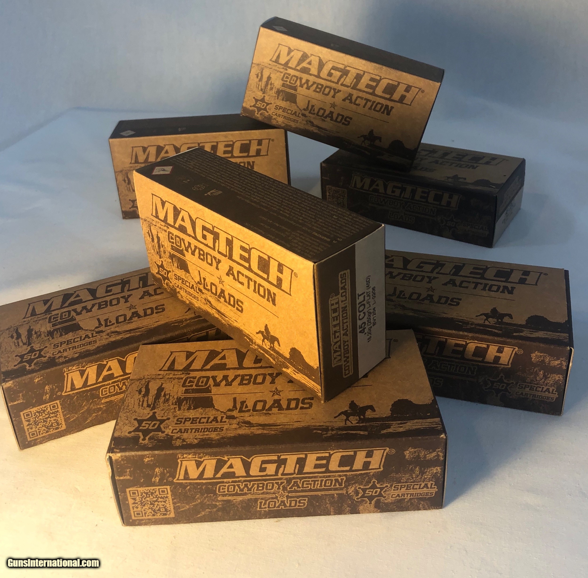 Description: These boxes of MAGTECH Cowboy Action Loads are NIB complete. They are 45 Colt 250 Gr lead flat nose ammunition. These are sold by the box! Free shipping with the purchase of 5 or more boxes! Ground shipping and handling is extra to the lower 48 states. (Except no ship to CA and NJ) FREE SHIPPING WITH PURCHASE OF 5 Or more boxes! This ammunition is sold as a collectors item only and we make no quarantees to its quality or functionality. Please know and abide by your local laws in regards to purchasing ammunition. Signature required upon delivery. We accept Master Card and Visa, personal check, or money order. SOLD |