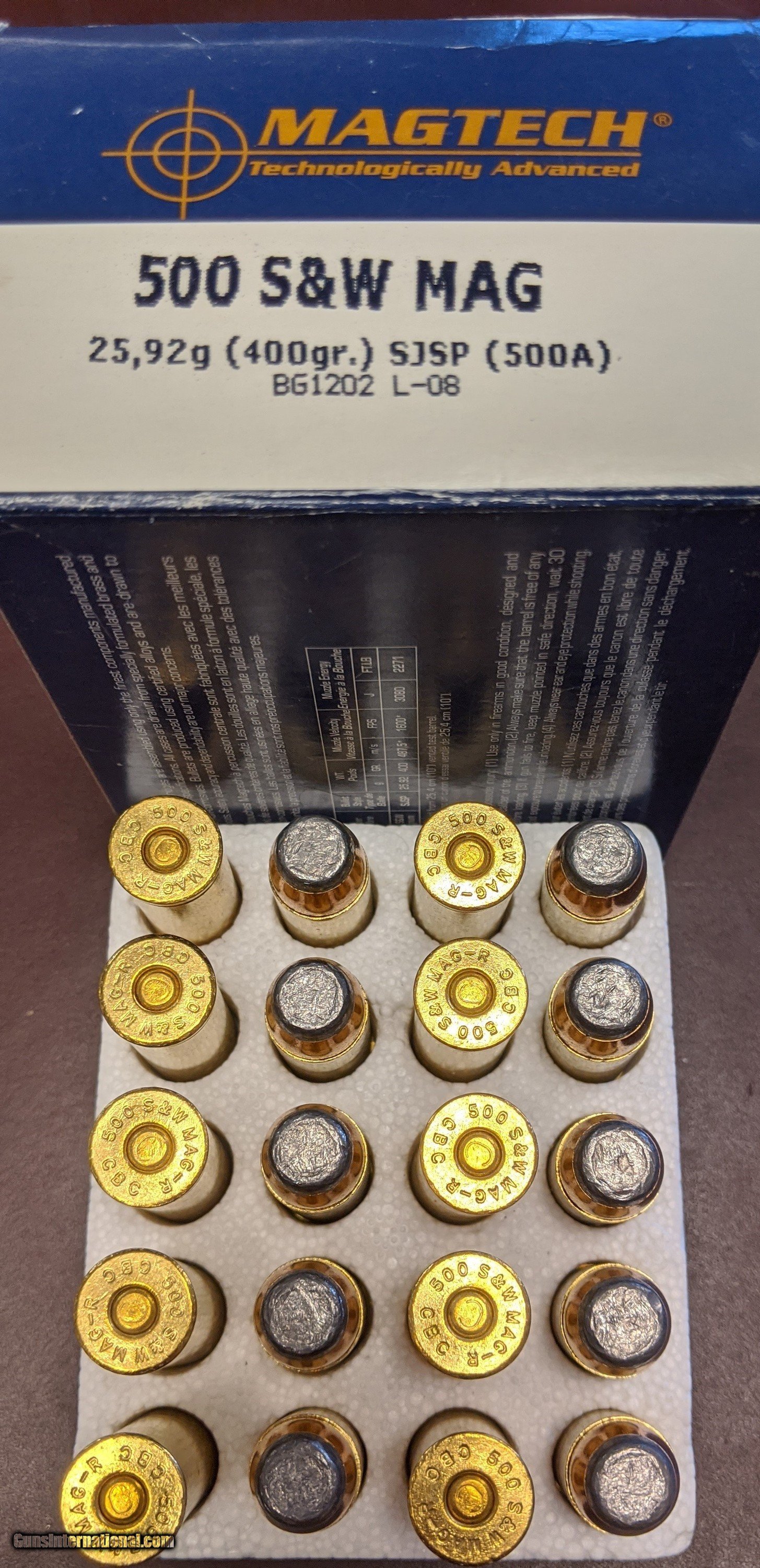 Description: Full box (20 rounds) of MAGTECH 500 S&W. SOLD |