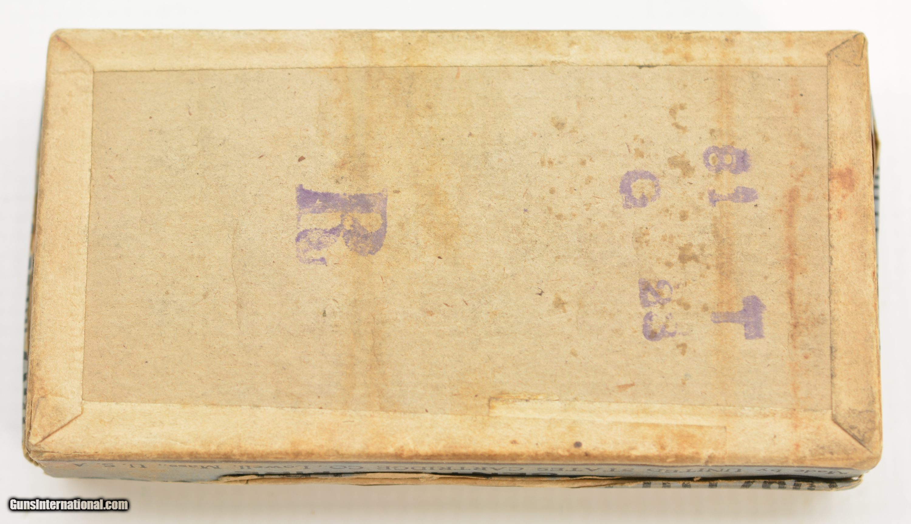Description: This is a very rare, full box (50 rounds) of .44 Bull Dog manufactured by US Cartridge Company. The box is in very good condition with all labels intact, slit to open on three sides using the back side label as a paper hinge with good graphics and only an old price written on the top. The edges show some slight seam separation on the corners. The cartridges are in excellent condition and all appear native to this box. A great box in a rarely seen caliber. SOLD Manufacturer: US Cartridge Co. Model: Ammo Caliber Info: .44 Bulldog Gauge Info: .44 Bulldog |