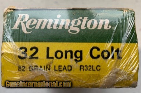 Description: Remington 32 Long Colt, 82 grain lead. 50 rounds. Ammo in excellent condition. Box in fair condition. Price $85.00 includes shipping. SOLD Handgun Caliber: .32 Long Colt |