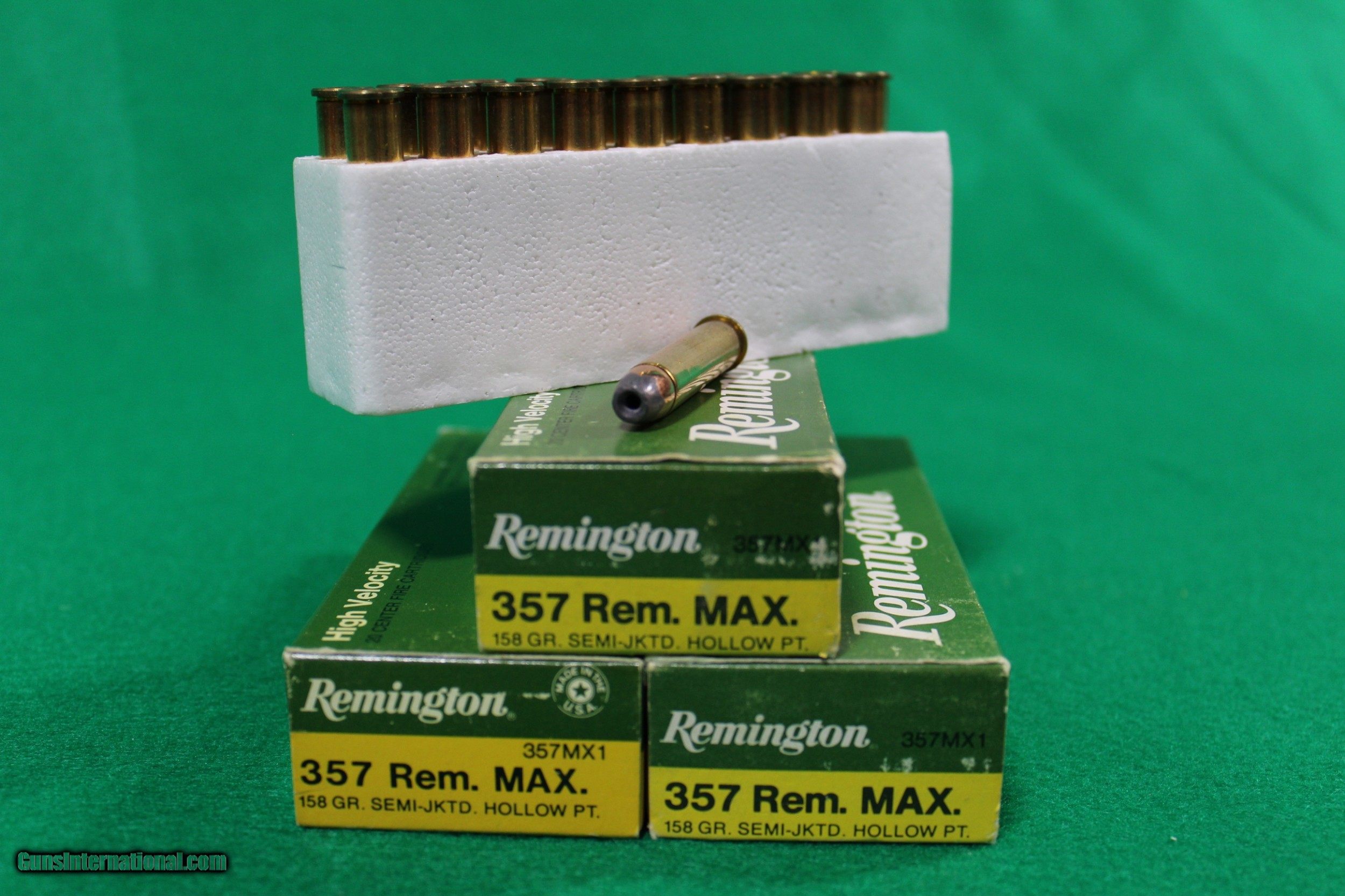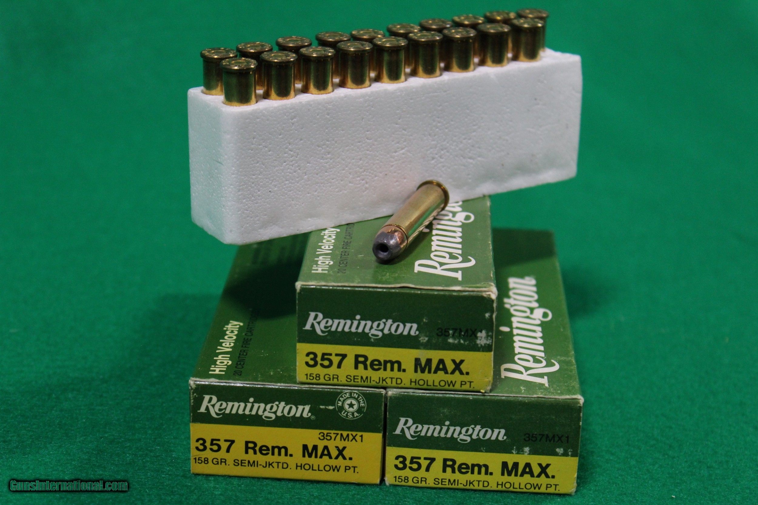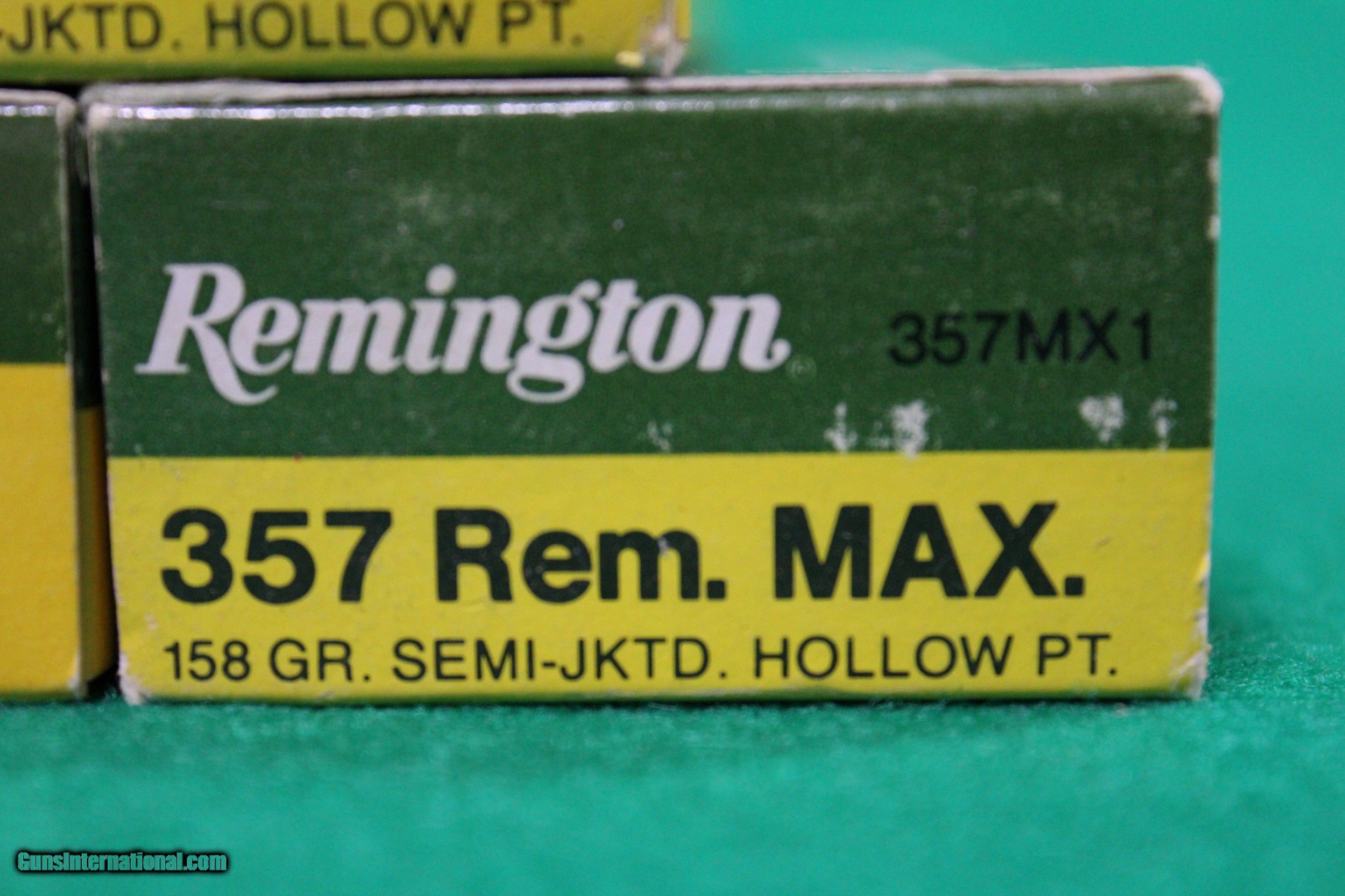 Description: Item Description: We have twenty-eight (28x) boxes of Remington Ammunition Brand .357 Remington Maximum Ammunition. This ammunition hosts a 158 Grain Semi-Jacketed Hollow Point. There are twenty (20x) rounds per box Guns International Sellers Terms and Agreement We accept Visa, MasterCard, Discover, and American Express. Checks and Money Orders: We accept USPS money orders only. ALL OTHER CHECKS AND MONEY ORDERS ARE HELD UNTIL THEY CLEAR OUR INSTITUTION AND THE FUNDS ARE RELEASED TO US. (Typically 10 days) Orders are not shipped until our institution releases the funds to us. California Sales We are enrolled in the California CFLC system and will ship qualifying firearms to any eligible FFL in California. Due to the additional steps we must complete on California sales we charge an additional $50 S/H fee. If you wish to have a firearm shipped to California please contact us and we will email you an interactive invoice where you can submit your payment including the additional fee. Alaska and Hawaii Sales There are extra shipping costs. Please request a quote before . Product Photos Please carefully look at each and every photo to ensure the condition of the item(s) in question. We do our best to take accurate photos that not only show off the quality of our items, but to also point out any marks or flaws. Stock photos are used for many of our listings. Please confirm the manufacturer's part number and UPC are consistent with the item you are looking for. Shipping Ammunition Cost $15 for Shipping of quantities less than 100 Rounds Ammunition Cost $25+ for shipping of higher quantities Long Guns cost $25 for Shipping Handguns cost $35 for Shipping Orders are normally shipped within 3 business days after receiving payment and FFL. But please allow up to 5 business days for us to process and ship your order. Cancellations – Firearm(s) cancellations will incur a 15% restocking fee, unless exchanged for an item(s) of equal or greater value. 3-day Inspection/ Return Policy The 3-day inspection period Is for defects and to make sure the gun received is the gun ordered. If there is a manufacturing defect with the firearm, please notify us immediately so that we can do our best to remedy the issue in a timely manner. After a gun has been transferred to the customer, all issues must be handled through the manufacturer. Contact Information Please contact us via Guns International Messager. Please note that we maintain normal business hours Mon-Sat, and some messages may take up to 48 hours to be answered. SOLD |