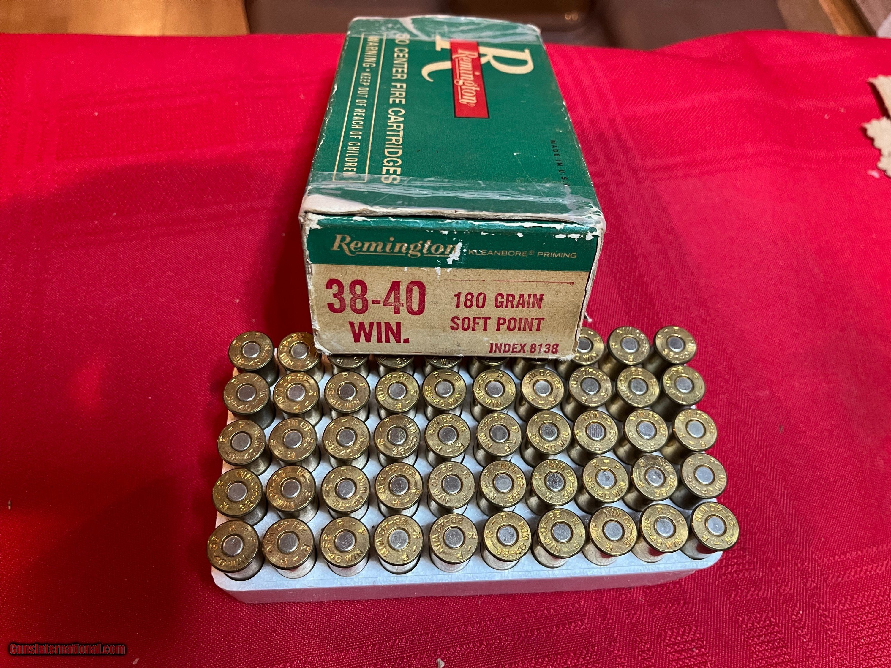 Description: Full box Remington 38-40 180 grain soft point ammo. 50 rounds. SOLD Rifle Caliber: .38-40 Winchester Handgun Caliber: .38-40 Winchester (.38 WCF) |
