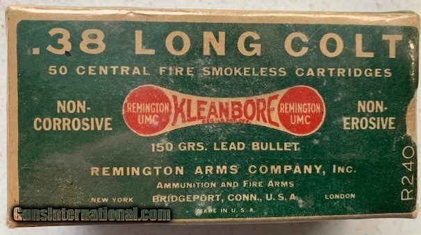 Description: Remington .38 Long Colt, 150 Grains. Kleanbore Cartidges 50 Rounds. Box in excellent condition with one minor flaw where the original price tag was removed. $85.00 includes shipping. SOLD Handgun Caliber: .38 Long Colt |
