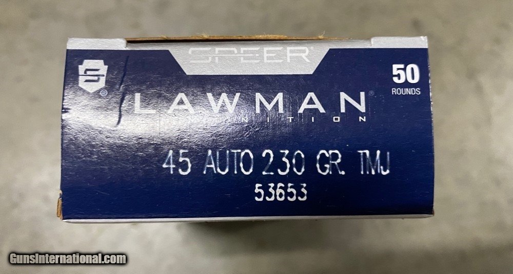 Description: Speer Lawman 230 gr TMJ 45 Auto Case of 1000 Bulk Ammo - Factory New SOLD |