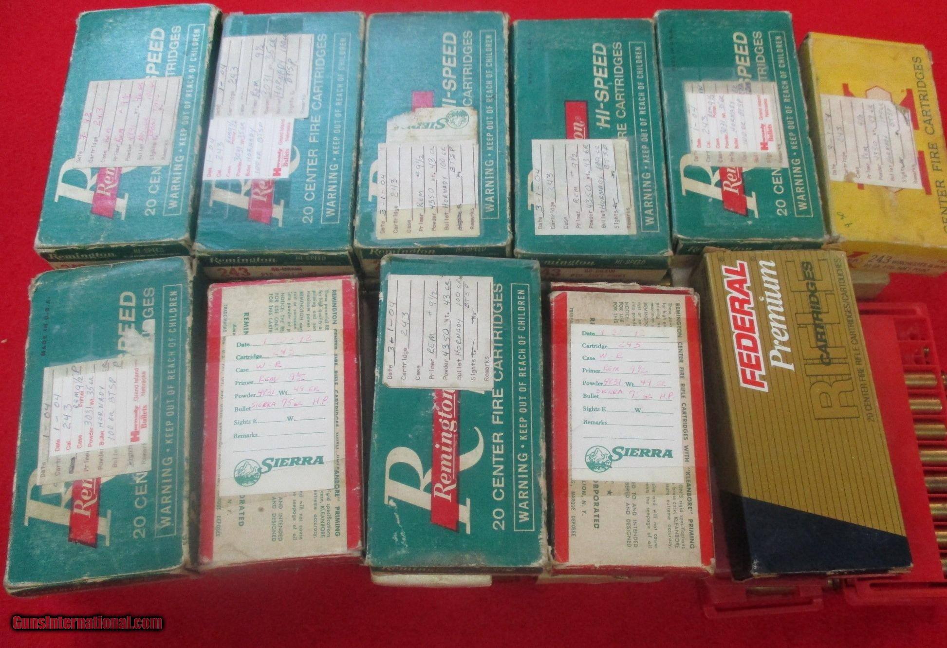 Description: Up for sale are about 215 Rds of .243 Win. Reloads. Headstamps appear to be Rem-Peters. The cartridges are contained in eleven factory boxes most being Remington, one Federal , one Winchester. All cartridges appear to be in good shape and shootable.The boxes are marked with reloading specifics.If you are in need of some cheap ammo to blast at the range this should suit your needs.I will ship this ammo directly to the buyer provided you include a copy of your picture ID such as a Pistol Permit, CCP, Firearms Certificate or DL and you must be at least 21 years of age. Shipping to Continental US only not to include AK or HI for $30.00 UPS Ground. NO RETURNS.Buyer Assumes All Responsibility For Ammo. I am a storefront FFL in business 20 years with over 1600 A+ Internet Sale Ratings. SOLD Rifle Caliber: .243 Winchester |
