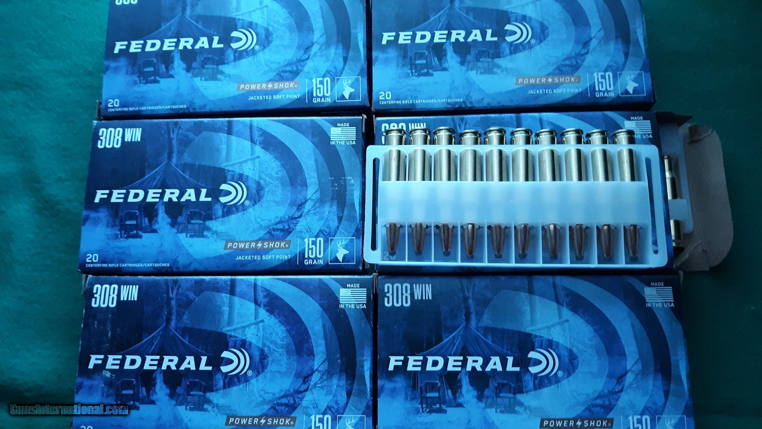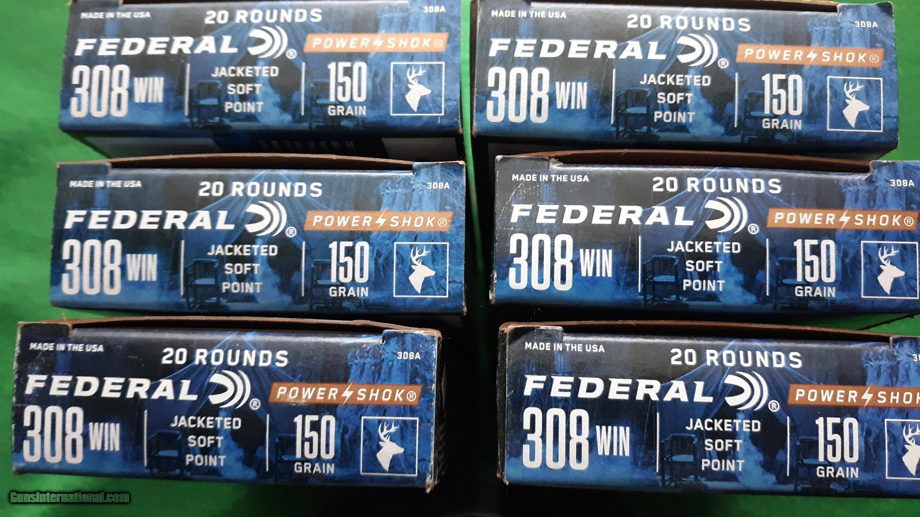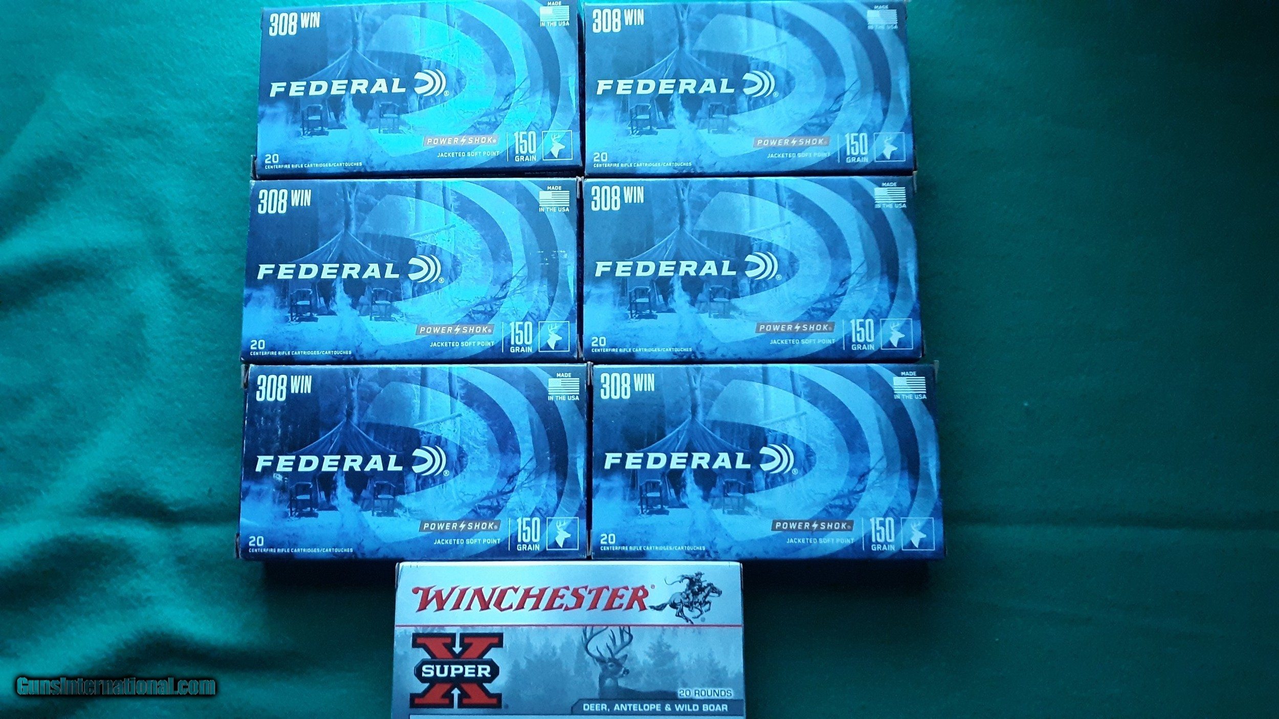 .308 win. (140 RDS.), FACTORY NEW AMMO 6 BOXES FEDERAL 150 GR.,AND 1 BOX OF WINCHESTER 150 GR.