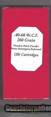 .40-60 W.C.F. Buffalo Arms Full Box (20) Cartridges Black Powder