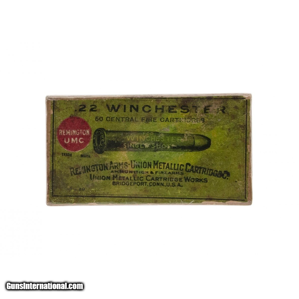 Description: " .22 Winchester Center Fire Cartridges by Rem. UMC. Partial Box of 38 Shells. SOLD |