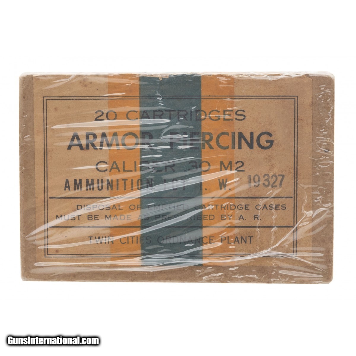 Description: "Caliber 30 M2 Amor Piercing Ammo by Twin Cities Ordnance Plant. Full Box of 20. SOLD |