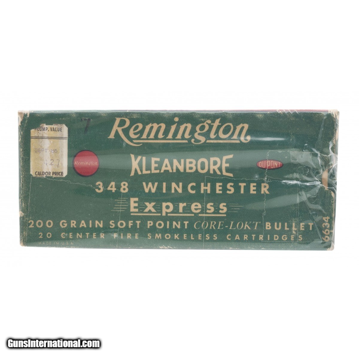 Description: " 348 Winchester by Remington Kleenbore 200grn soft point core-lokt cartridges. Full box of 20. SOLD |