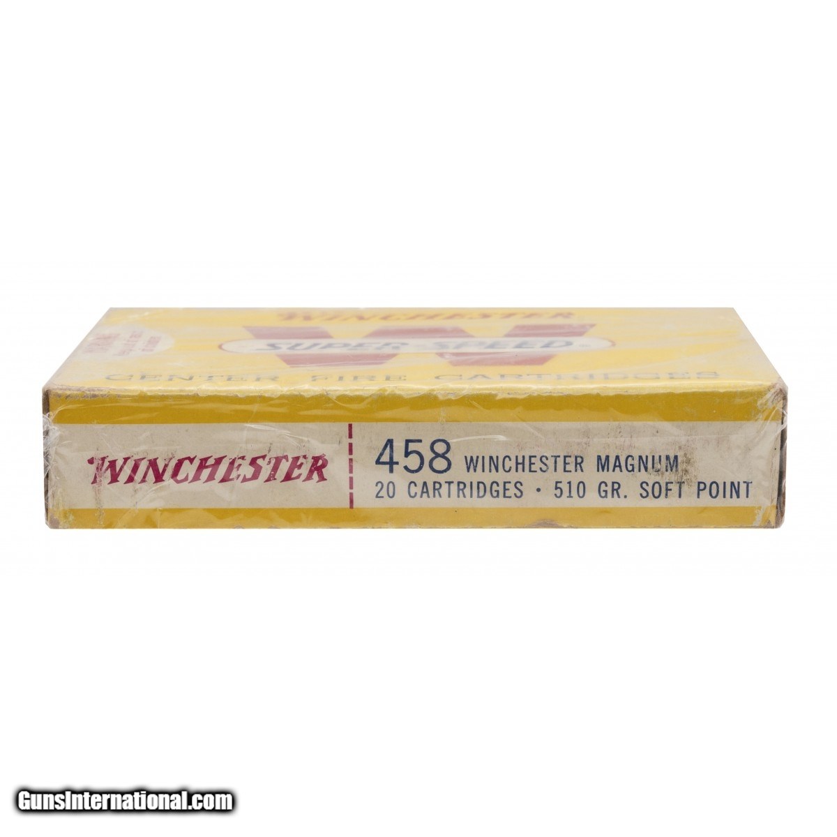 Description: " 458 Winchester Magnum 510grn soft point by Winchester Super-Speed Cartridges. Full box of 20rds. SOLD |