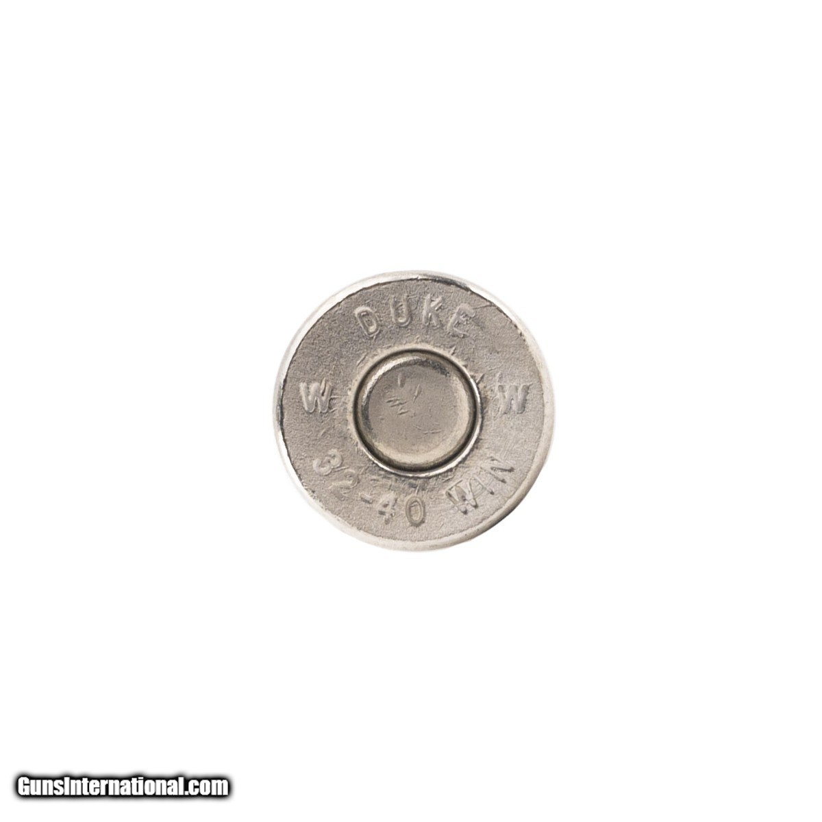 Winchester John Wayne Commemorative Ammunition. Original production .32-40 Winchester 165 grain ammunition and box. Soft point bullet with nickel plated casings and distinctive head stamp ""W/ DUKE/ W/ 32-40 WIN"". Very Good Condition.