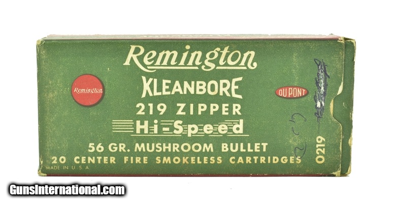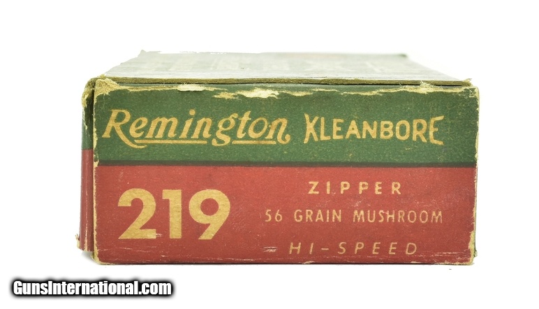 Description: Remington Kleanbore .219 Zipper Hi-Speed 56 GR Mushroom Bullet Ammunition (in shopworn box). SOLD |
