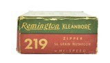 Remington Kleanbore .219 Zipper Hi-Speed 56 GR Mushroom Bullet Ammunition (in shopworn box).