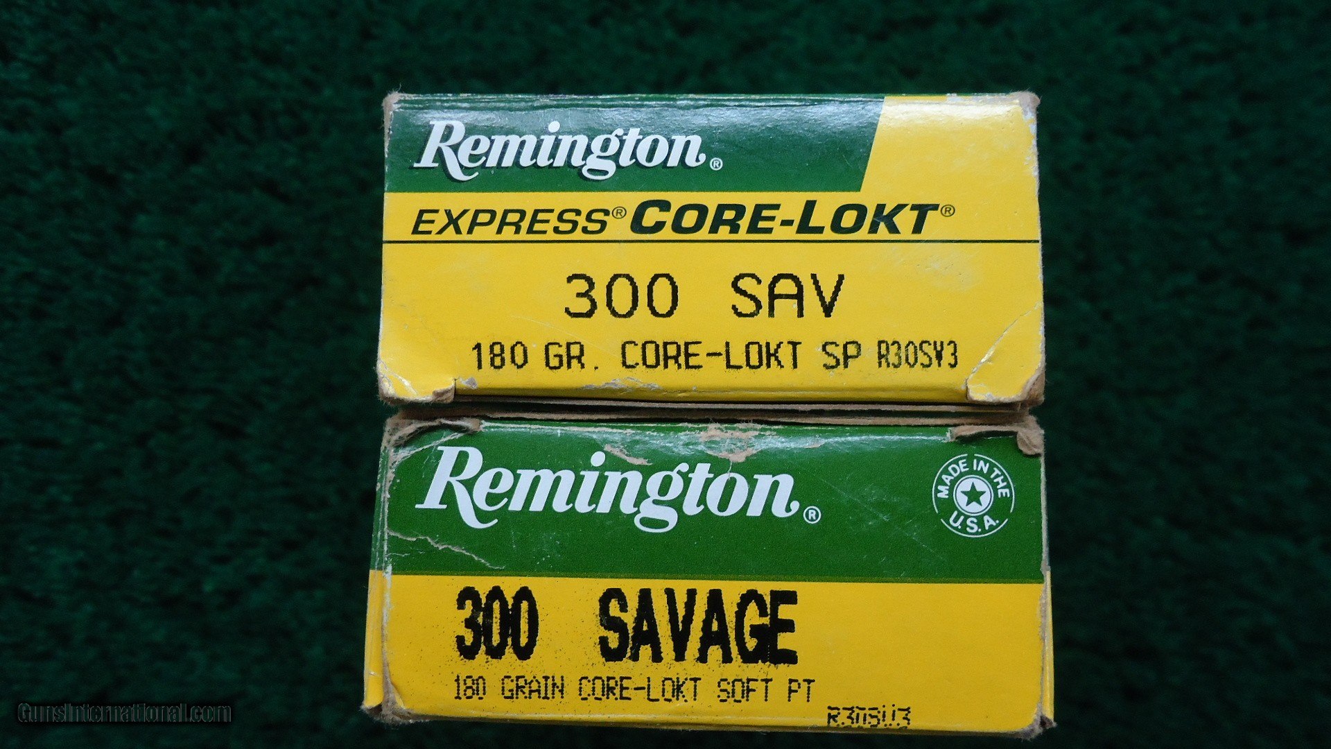 Description: 2 full boxes of 20 rounds each of 300 SAVAGE 180 Grain Core-Lokt Soft Point Bullets. 40 rounds total. Free Shipping. Leroy Merz Antique Firearms specializes in antique and vintage Winchesters and other fine American firearms. Since 1965 Mr. Merz has taken part in the world of firearms and has been a contributor to many well known reference books. We have hundreds of additional guns in every price range at our home online. Search for Merz Antiques in google. SOLD Rifle Caliber: .300 Savage |