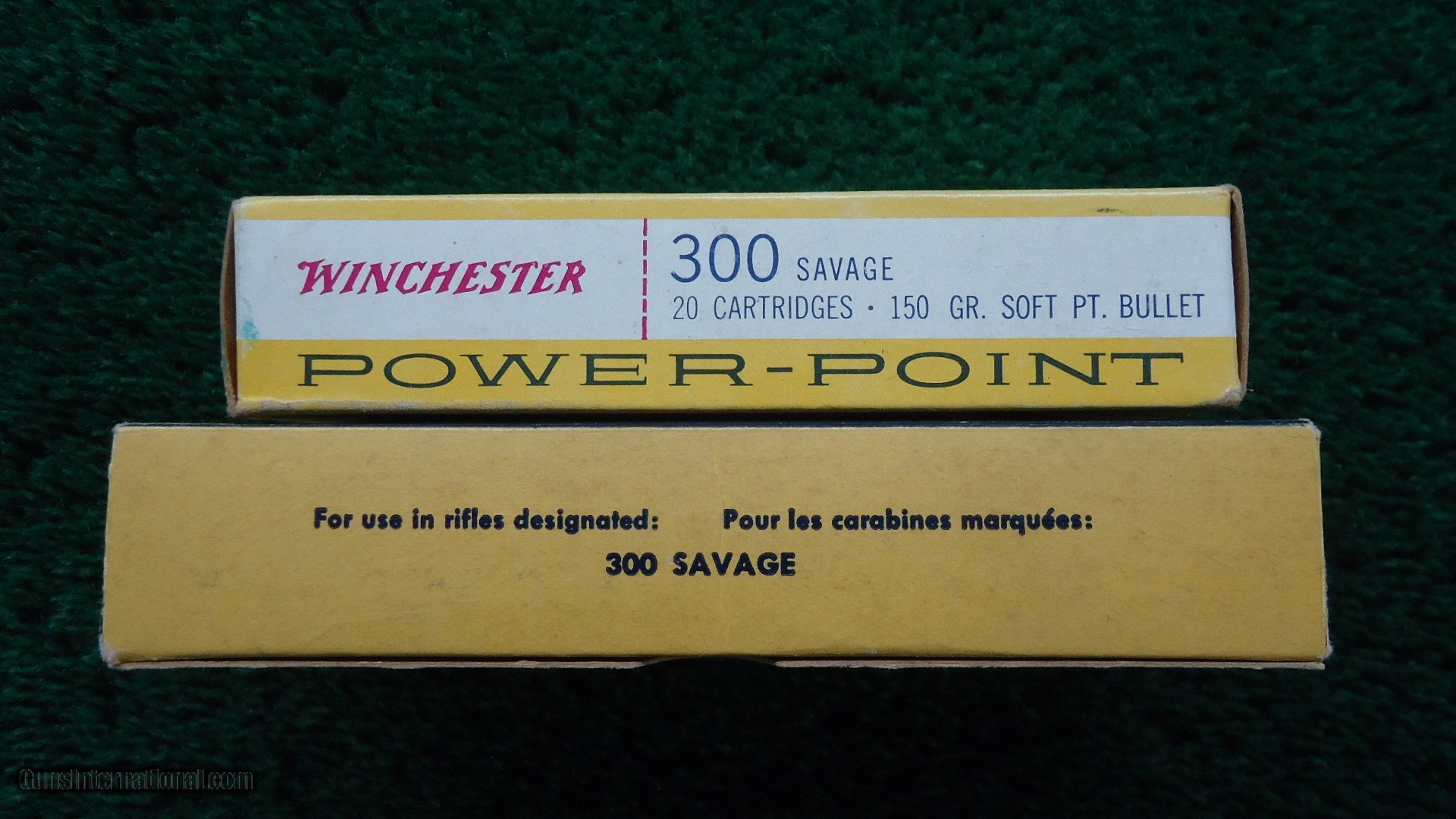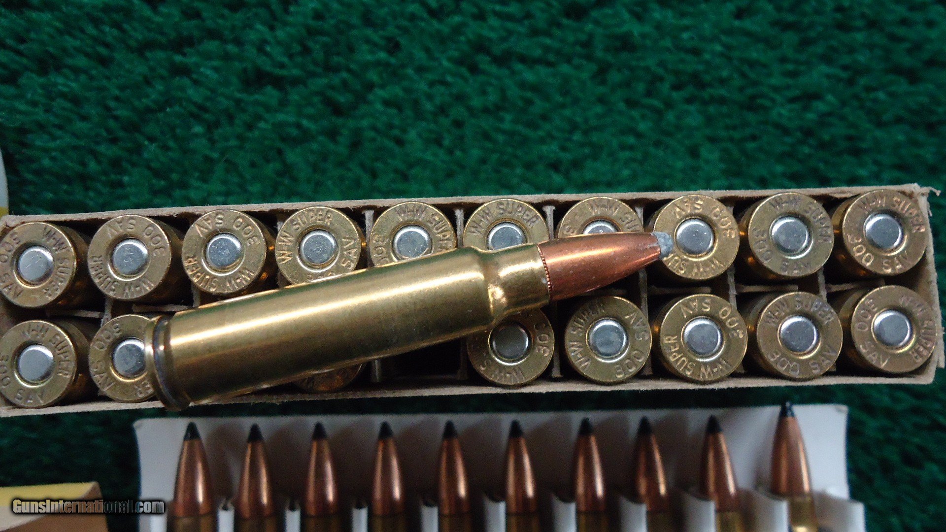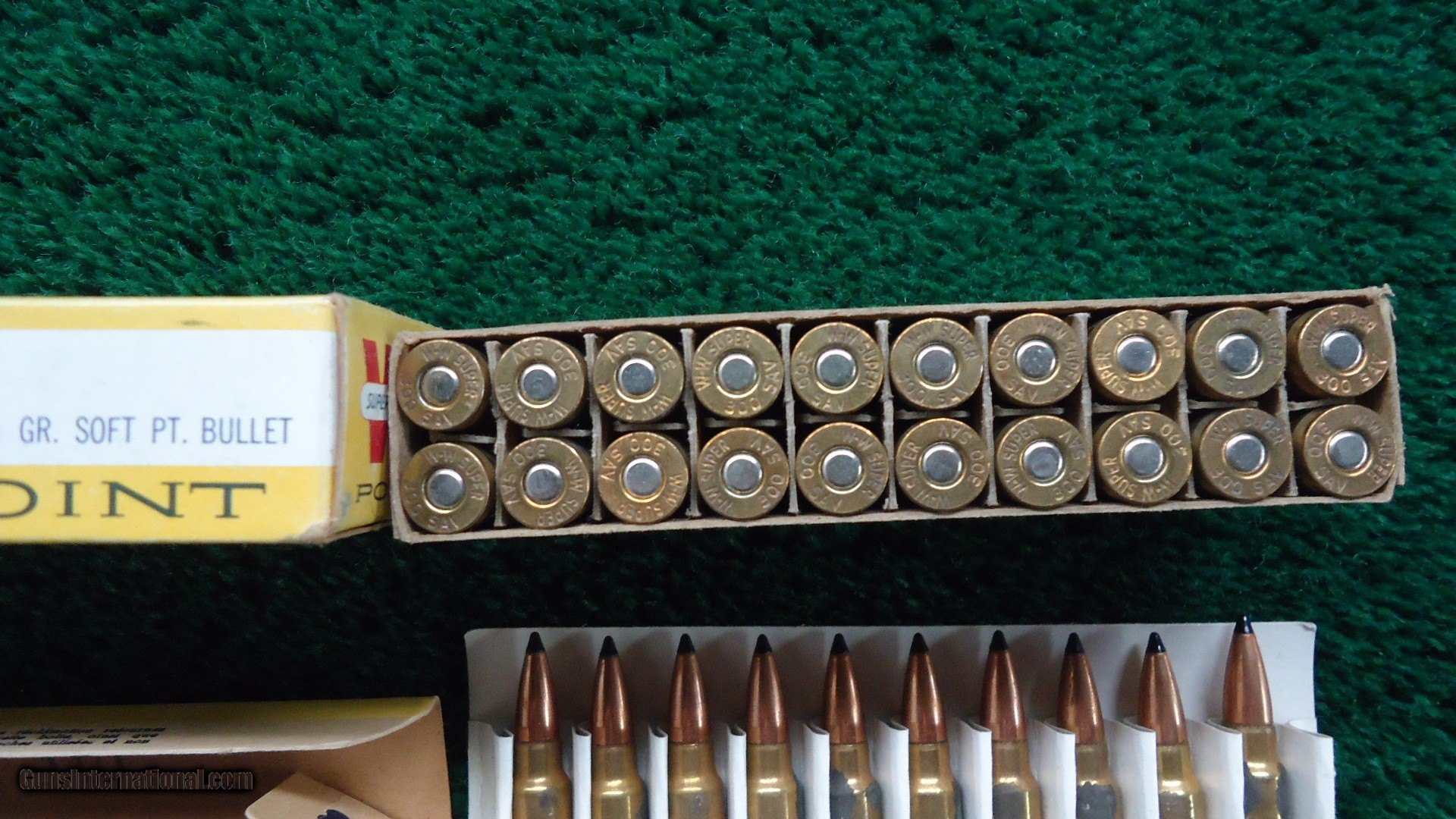 Description: 1 full box of 20 rounds of Winchester brand 300 SAVAGE 150 Grain Soft Point Bullets. 1 full box of Dominion brand 150 Grain Sabre Tip Bullets. Some spots of corrosion on the Dominion rounds. 40 rounds total. Free Shipping. Leroy Merz Antique Firearms specializes in antique and vintage Winchesters and other fine American firearms. Since 1965 Mr. Merz has taken part in the world of firearms and has been a contributor to many well known reference books. We have hundreds of additional guns in every price range at our home online. Search for Merz Antiques in google. SOLD Rifle Caliber: .300 Savage |