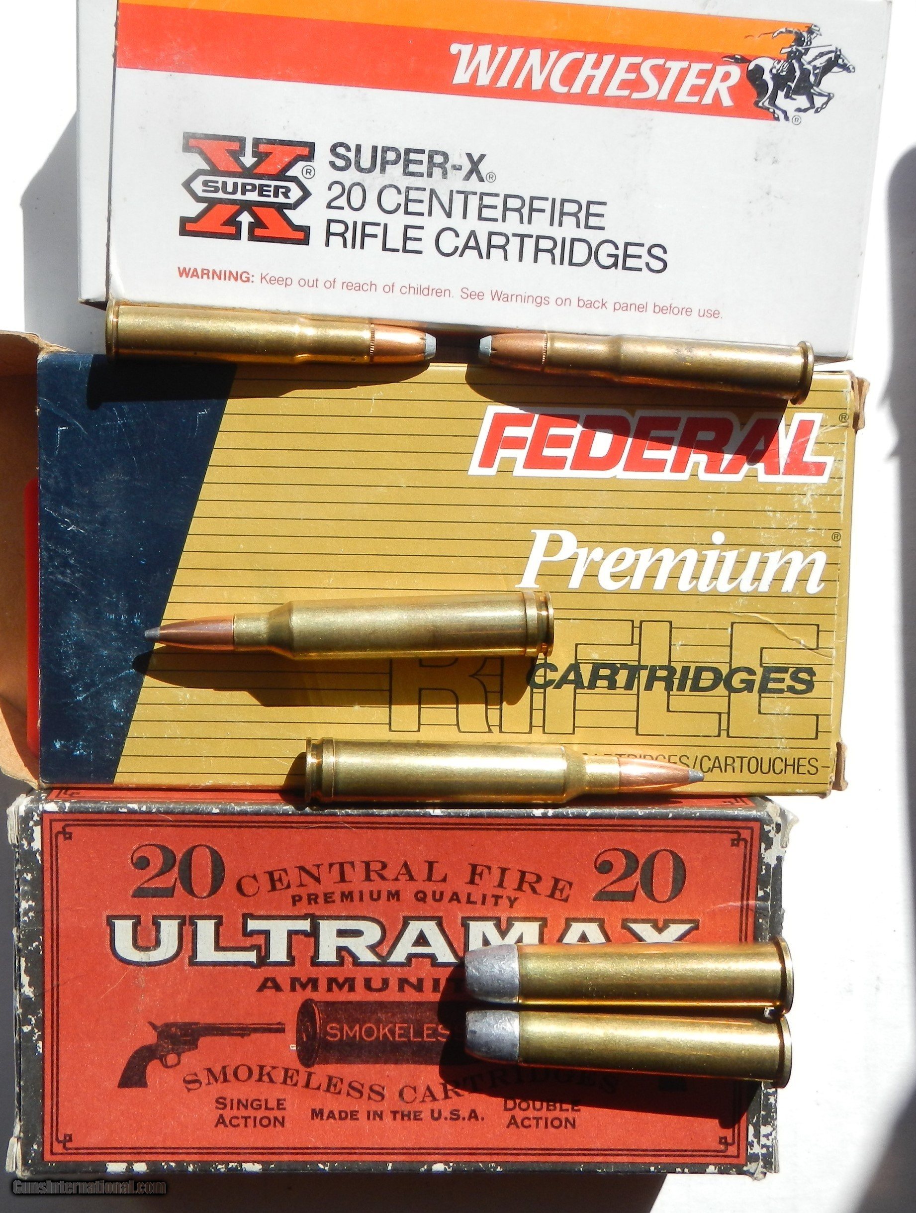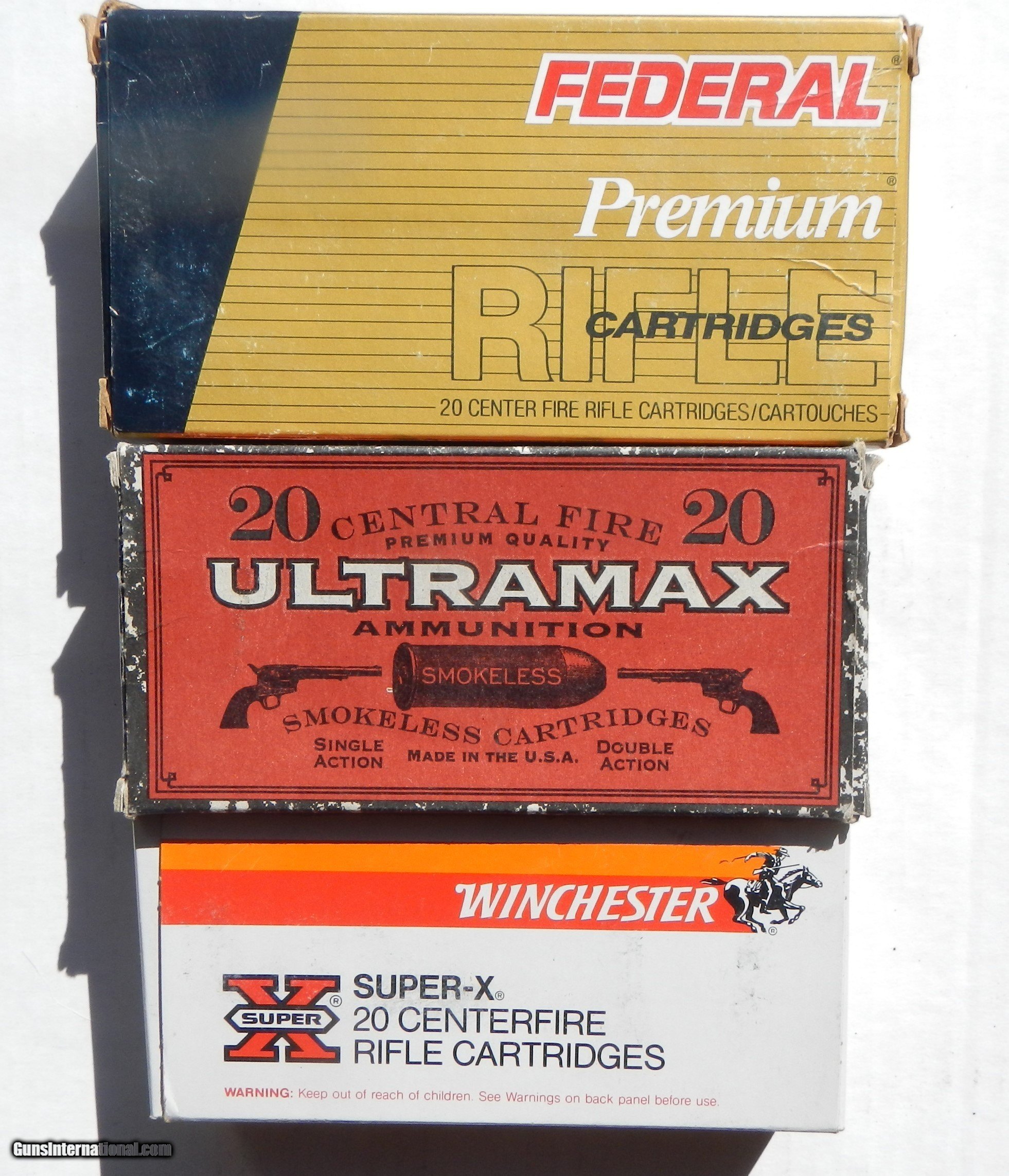 Description: One box of Ultramax 45-70 Gov't 405 Grain Round Nose Flat Point it is my understanding this load has been discontinued, One box of Federal Premium 7 mm Rem Magnum 140 Grain Nosler Partition, One box Winchester 30-30 150 Grain Power Point. Shipping is 6 lbs from 89436, you can use the UPS calculor to figure your shipping cost. I ship UPS Ground, ammo going to Calif. has to be sent to a licensed ammo vendor or FFL holder. Thanks SOLD |
