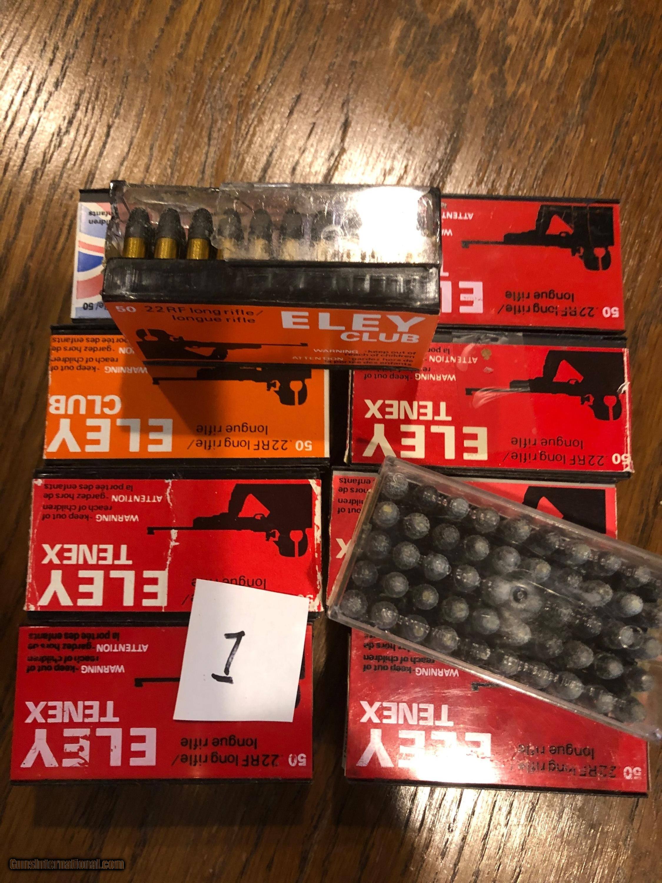 Description: 500 rds of Eley target ammo Tenex ammo the top shelf of 22 ammo. Make me an offer I can't refuse. SOLD |