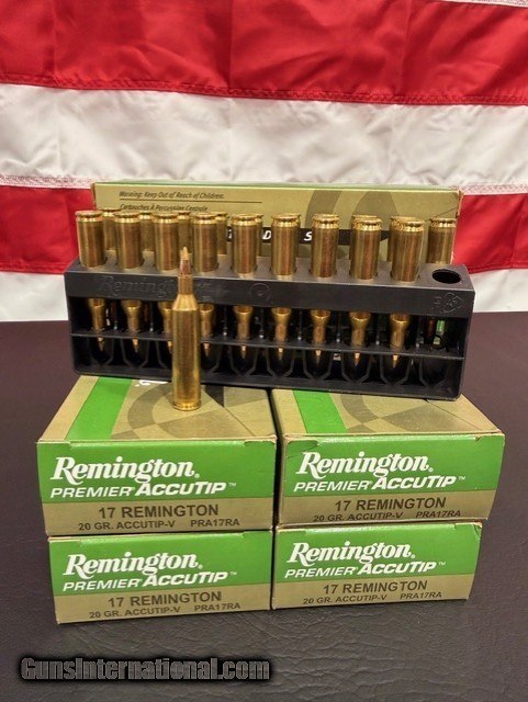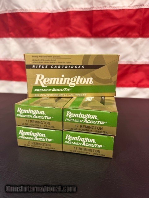 Available for purchase is 5 boxes of 17 Remington, 20 GR. Accutip-V.