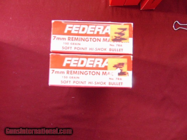 2 BOXES - FEDERAL 7MM REMINGTON MAGNUM AMMO 150 GRAIN SOFT POINT HI- SHOCK BULLET 40 ROUNDS