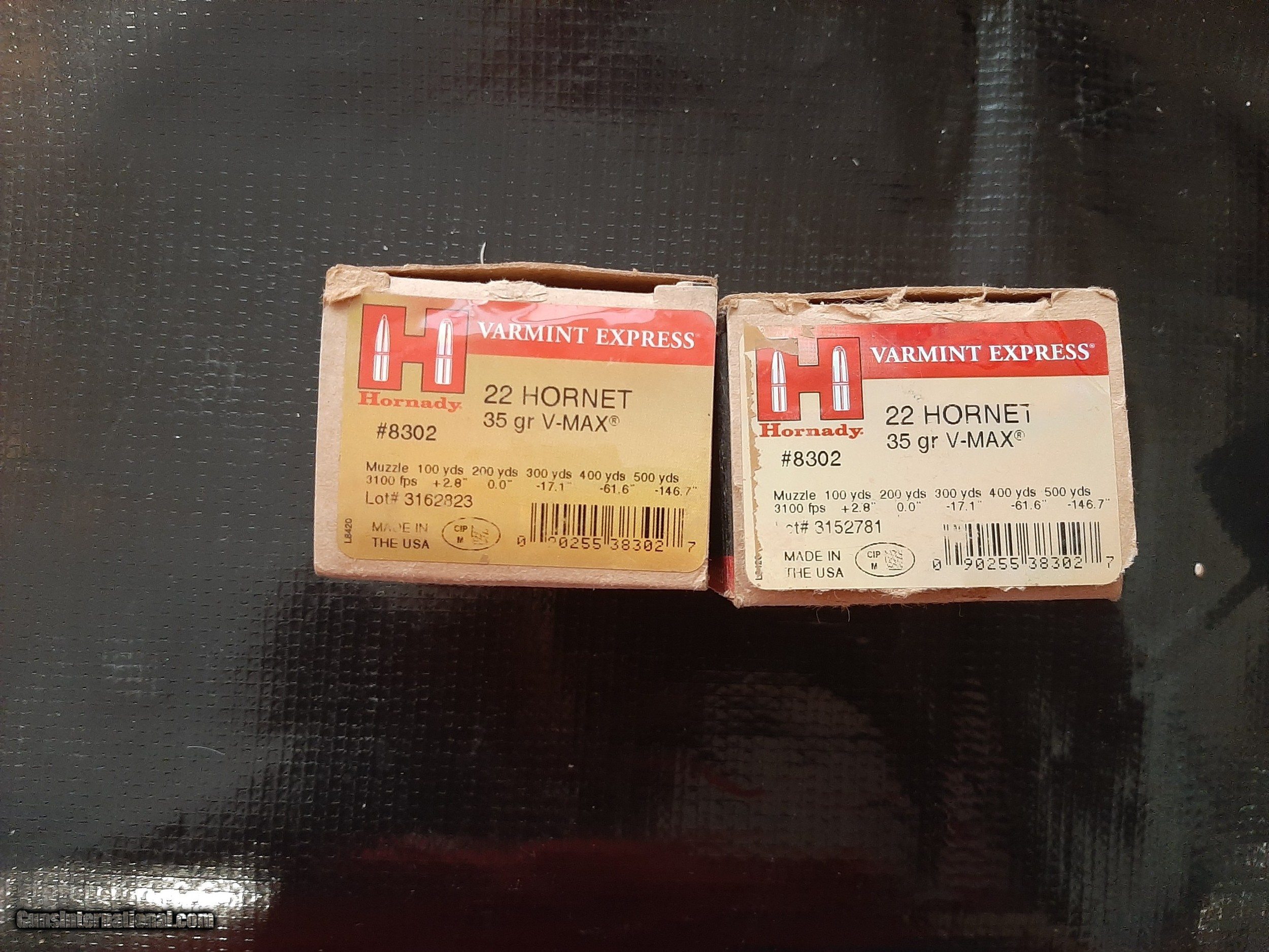 Description: 2 Bxs 25 Rds 22 Hornet 35Gr V Max 50 total Factory Rds Credit Cards add 3%. Shipping is 25.00 SOLD Rifle Caliber: .22 Hornet |