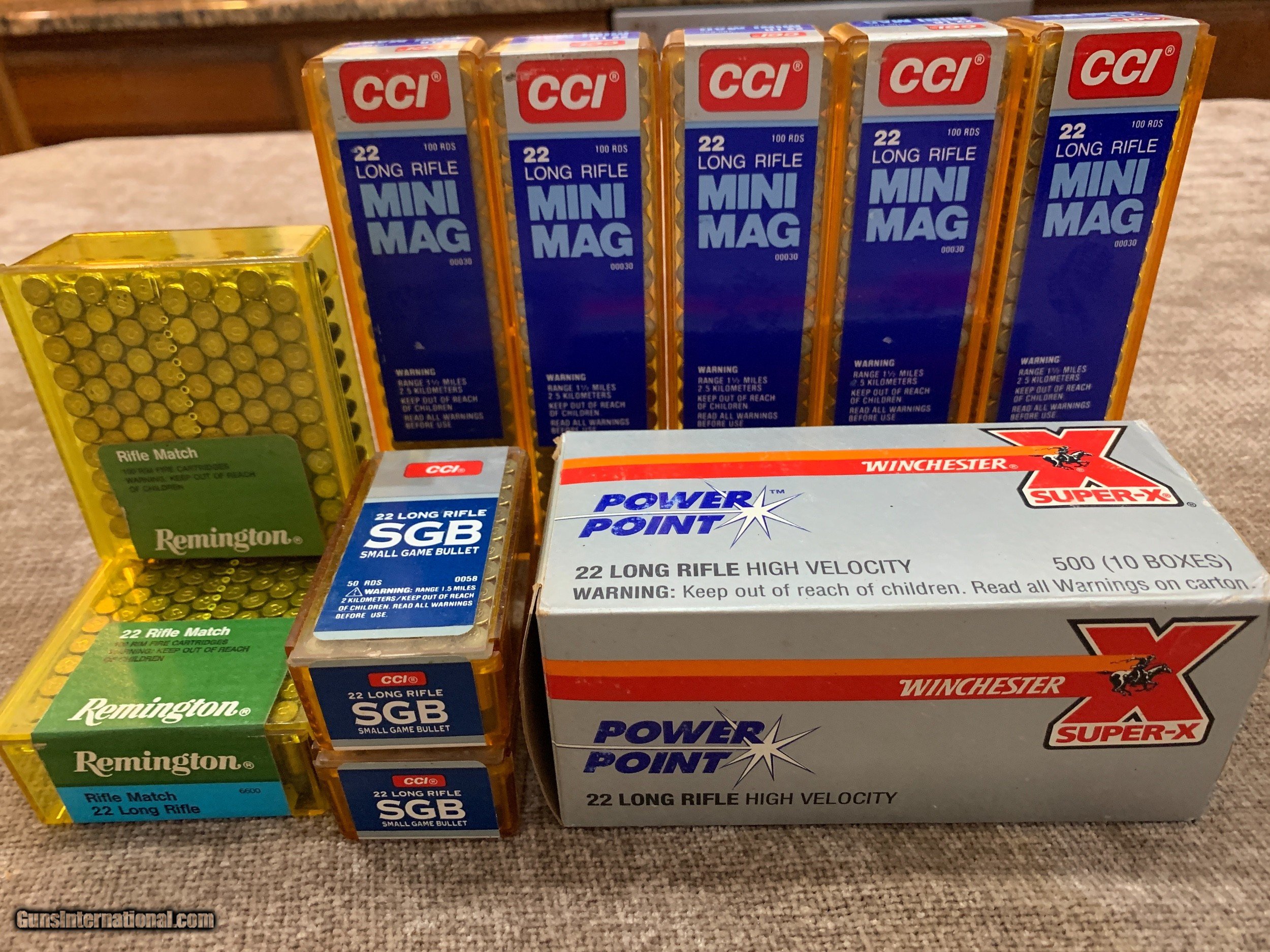 Description: 22 LR COMBO ONE BRICK (500) OF WINCHESTER POWER POINT, 500 ROUNDS CCI MINI MAG., 200 ROUNDS REM RIFLE MATCH AND 100 ROUNDS CCI SMALL GAME. 1300 ROUNDS FOR $350.00. JOHN 443-952-7165 PHONE ONLY PLEASE. FREE SHIPPING. SOLD |