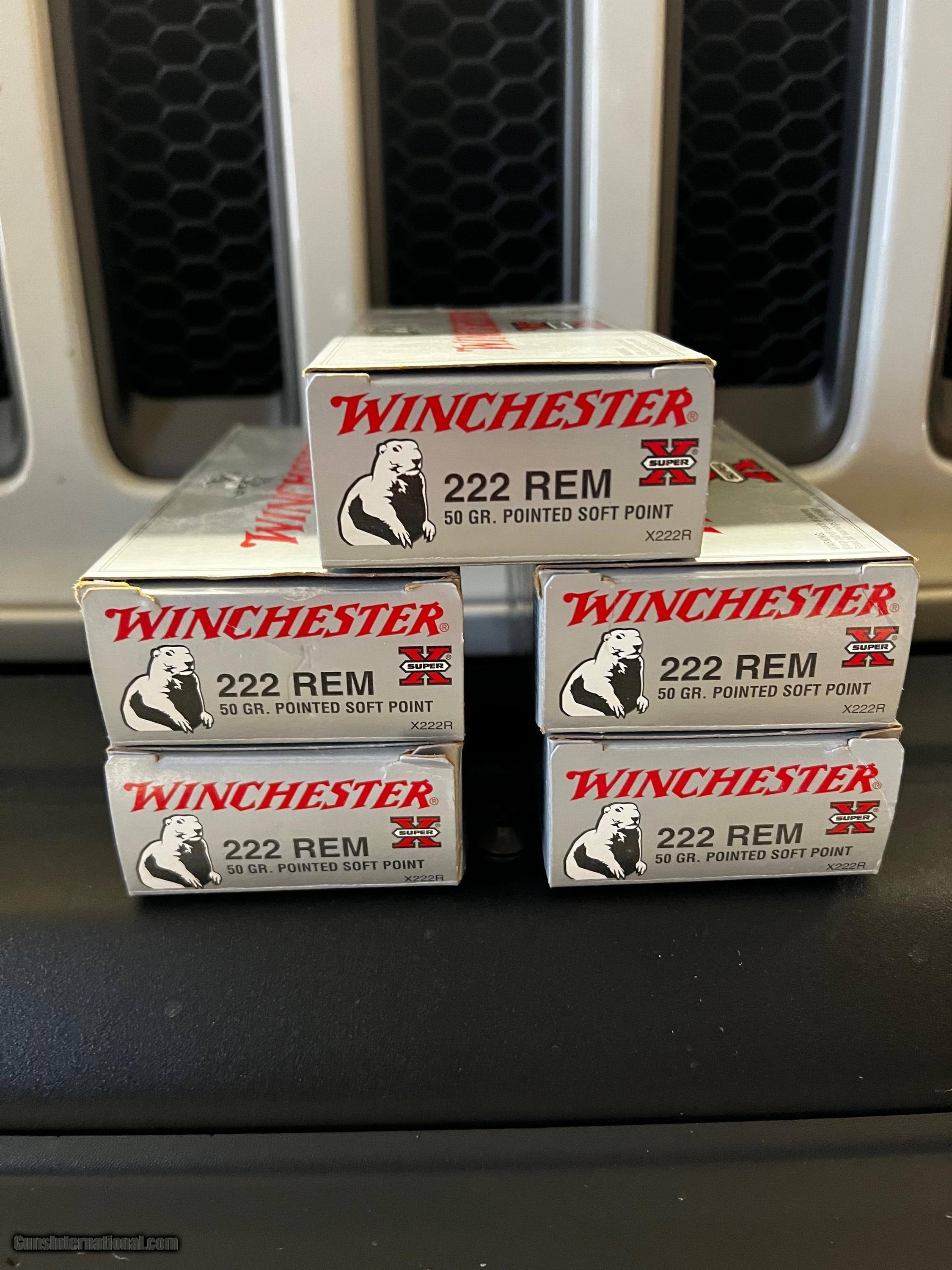 Description: 222 Remington 50 grain pointed soft point Winchester Super X 200 Rounds available at $300.00 + $25.00 Shipping factory new ammo NO SALES TO CA. will consider trades on factory ammo- .338 Lapua, .50 BMG & 6.5 Creedmore SOLD Rifle Caliber: .222 Remington |