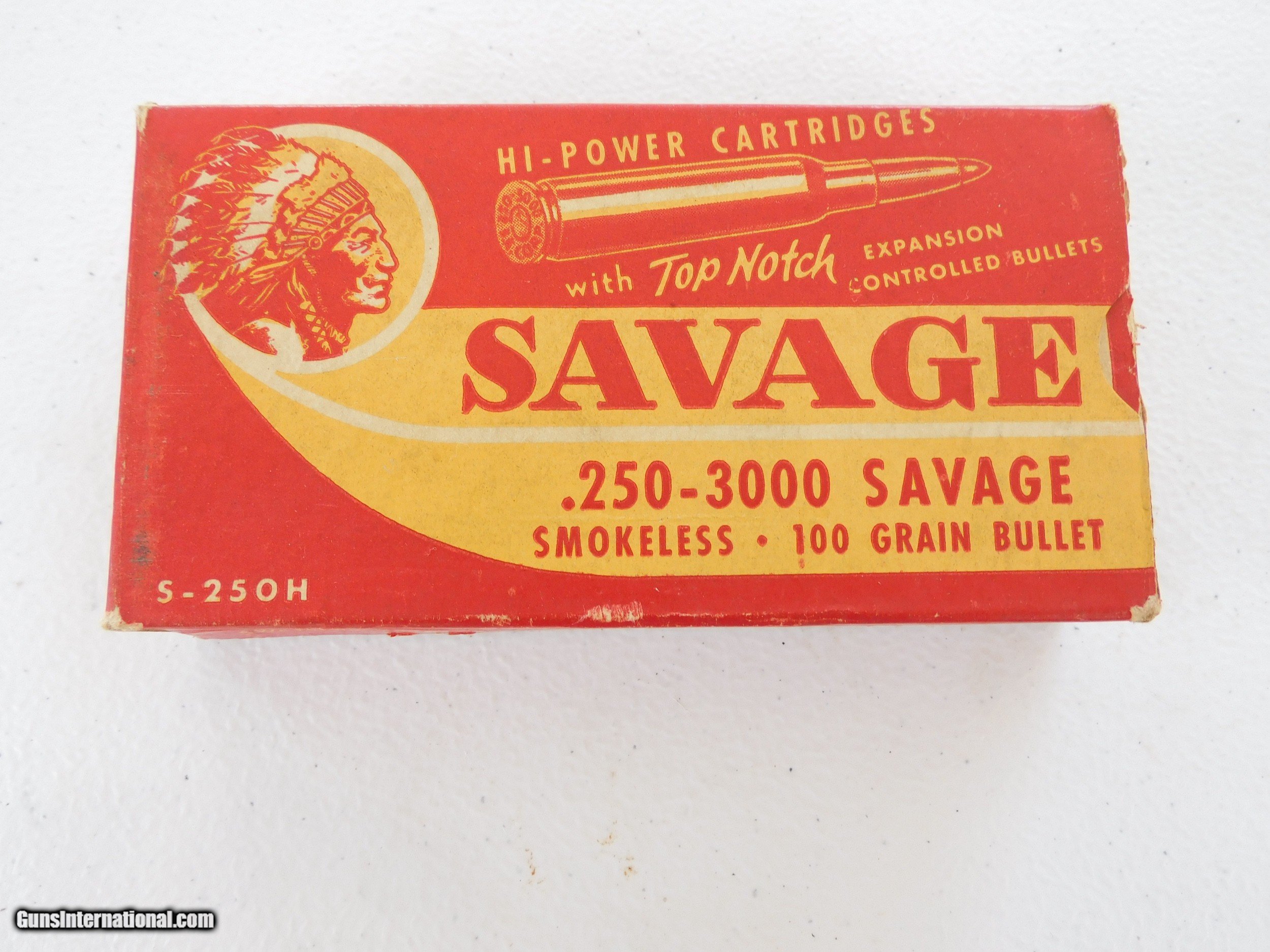 Description: #3786MA 250-3000 Savage, Savage red & yellow 20 rd. box in VG condition, 100 gr. bullet, very rare. $245 SOLD Rifle Caliber: .250-3000 Savage |