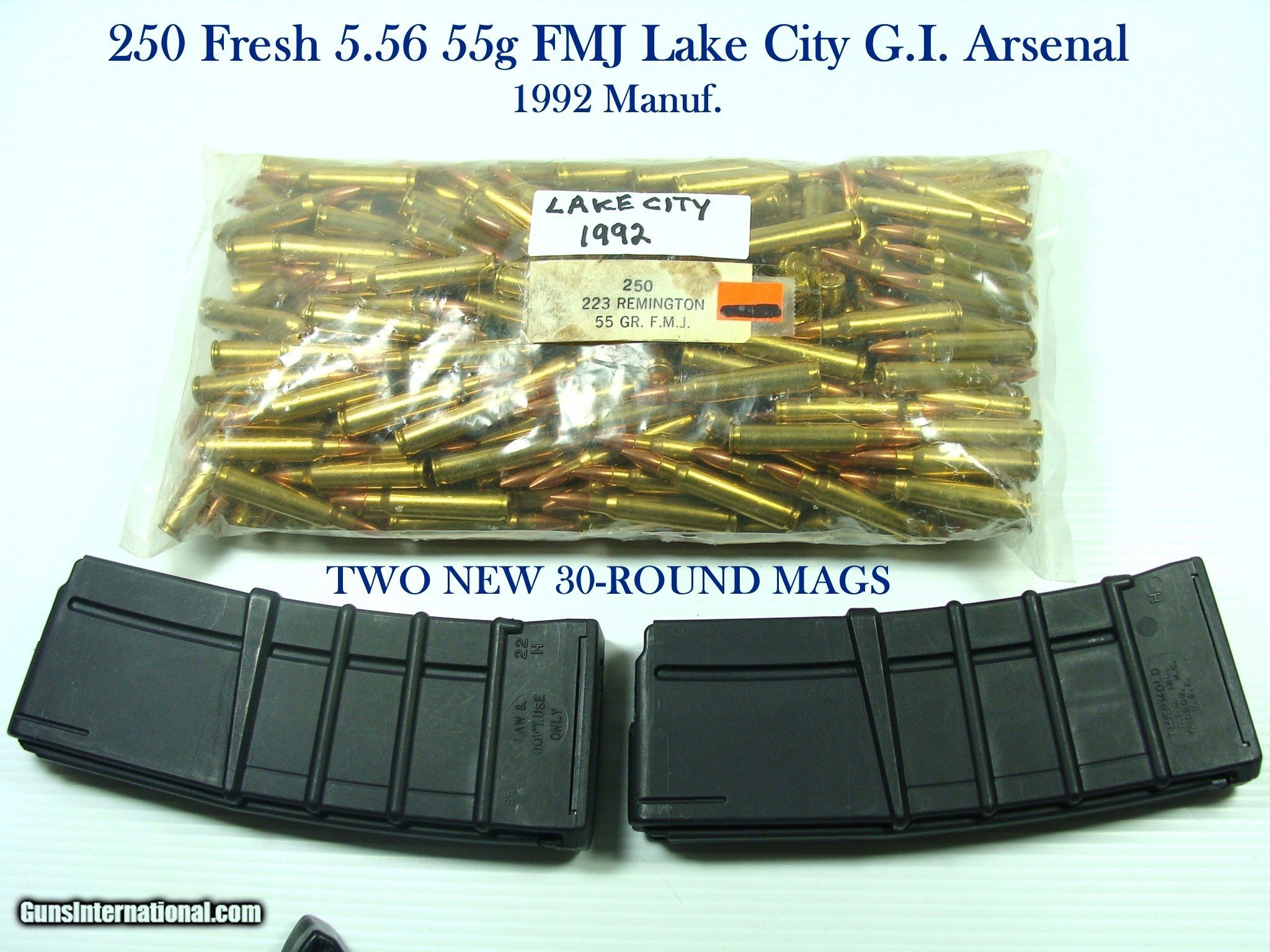 250 ROUNDS OF 5.56 (223 REM) 55 GRAIN FMJ FROM THE LAKE CITY GOVT. AMMUN. PLANT. HEAD STAMPED "92 LC". 1992 IN SEALED BAG. ++ 2 FREE