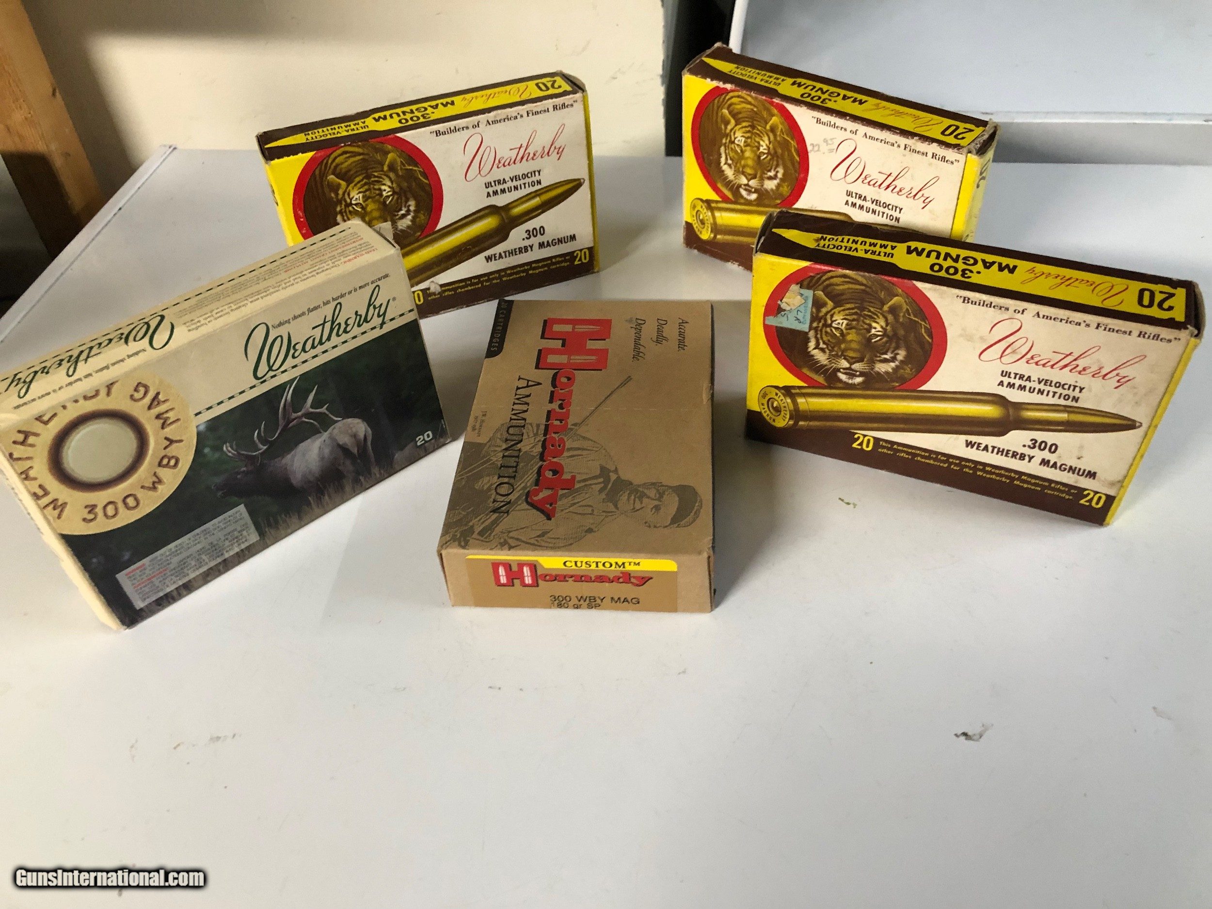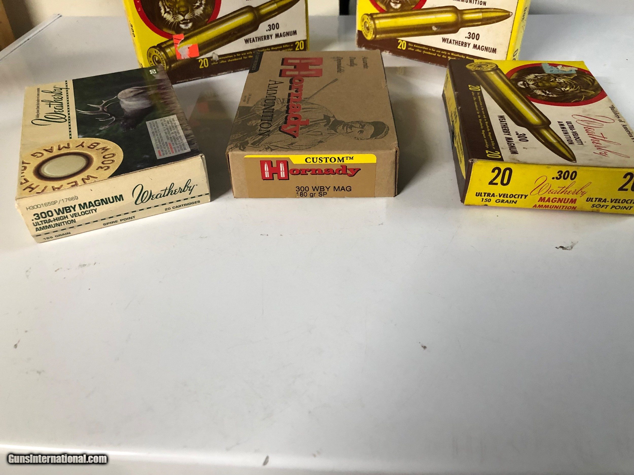 Description: Three boxes of factory new 300 Weatherby Mag Ammo w/ two boxes of brass. Three vintage boxes. Three different grain weights, 150, 165, & 180. $195 shipped SOLD Rifle Caliber: .300 Weatherby Magnum |