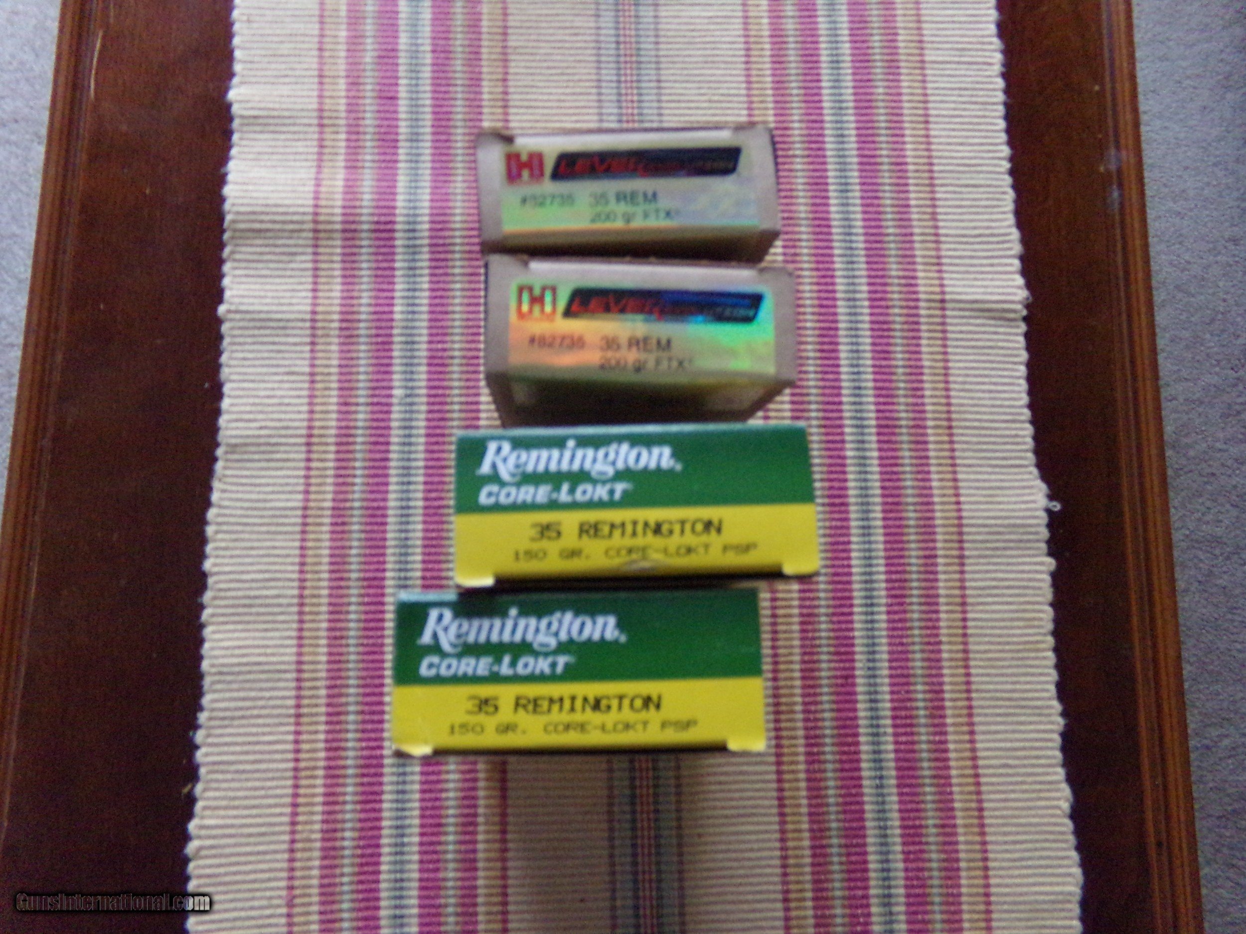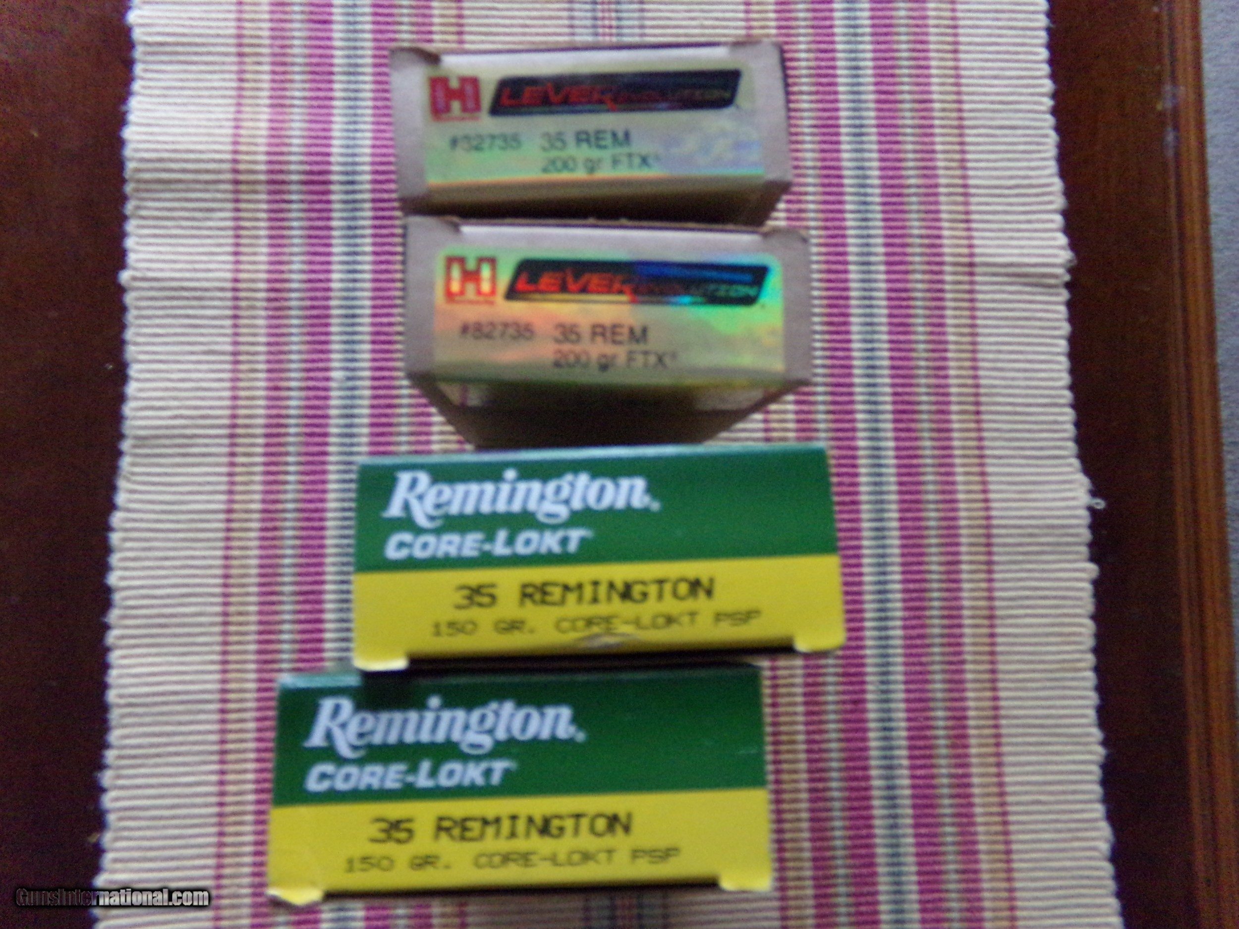 Description: 35. Remington Core Lokt 160gr PSP, NOS Hornady Leverevoltion 200gr FTX. Seldom avail. for purchase. Ck out my other listings. $ 75 a 20 rd box. Only two left . SOLD |