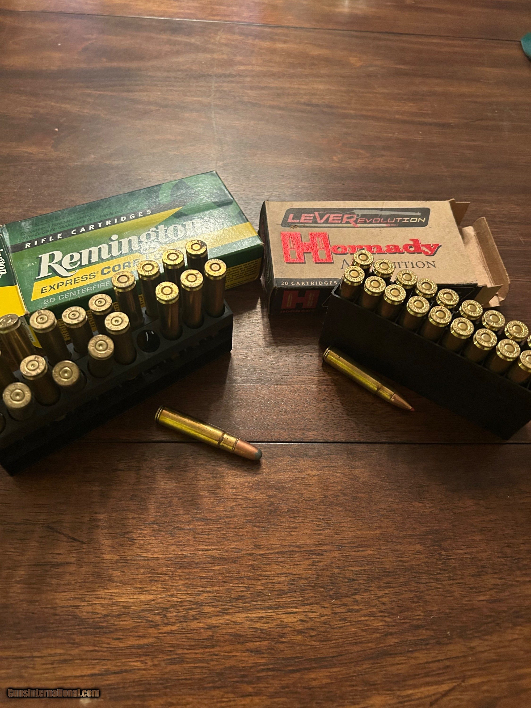 Description: I have one complete box (20 rnds) of Hornady 200 gr .35 Rem ammo and one partial box (8 rnds, 12 brass only) of Remington 200 gr .35 Rem ammo. $74.00 shipping inc. Price: $74.00 Contact Seller |