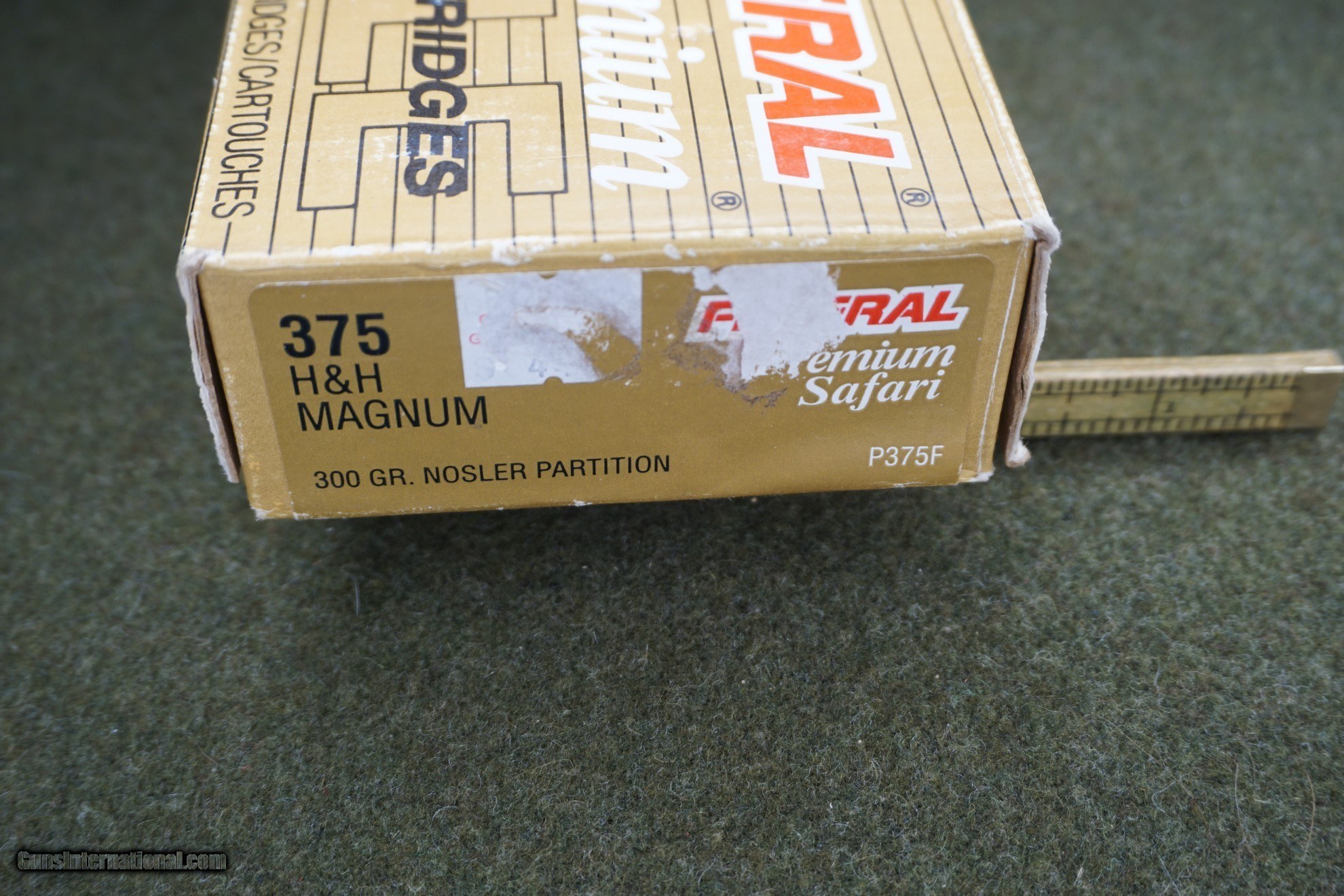 Description: SOLD 1 factory box of Federal 300 Nosler Partitions 375 H&H , call or text is best Payment for ammo and non gun items to be by credit card , photo check for deposit only. SOLD Rifle Caliber: .375 H&H Magnum |