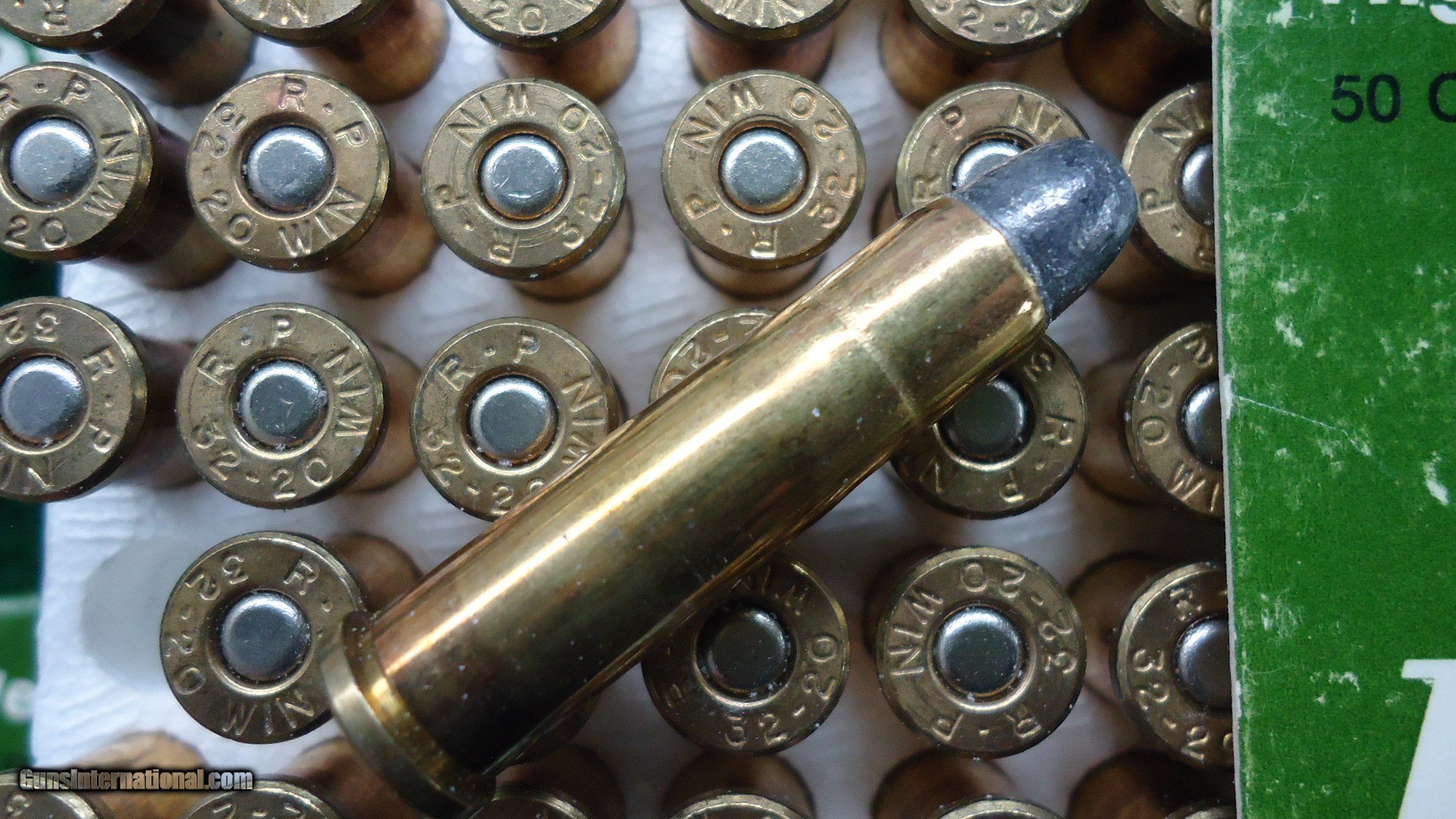 Description: 4 - 50 round boxes of Remington brand 32-20 Winchester caliber 100 grain lead cartridges. Leroy Merz Antique Firearms specializes in antique and vintage Winchesters and other fine American firearms. Since 1965 Mr. Merz has taken part in the world of firearms and has been a contributor to many well known reference books. We have hundreds of additional guns in every price range at our home online. Search for Merz Antiques in google. SOLD Rifle Caliber: .32-20 Winchester |
