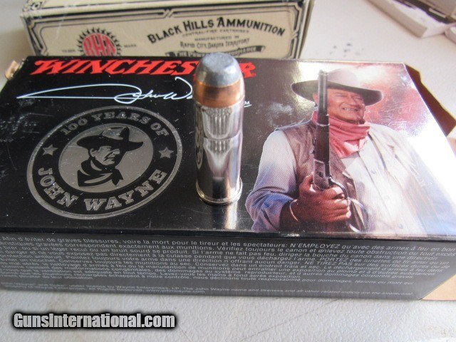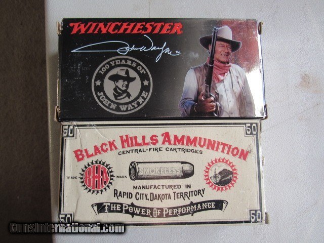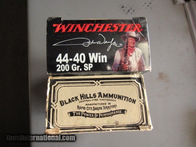 Description: New Old Stock lot of 44-40 Winchester (44 WCF) ammo. Box 1 is a full box of Black Hills 200 grain round nose flat point lead with brass cases. Box 2 is a full box of Winchester Commemorative John Wayne 200 grain soft point with nickel cases. Both are 50 round boxes so you get 100 rounds for your money and I pay the shipping to the Continental U.S. TERMS: THERE IS NO RETURN ON AMMO! No international sales. No sales to Alaska and Hawaii. These can ship directly to you assuming your local laws allow it. Please be aware of what is legal in your state AS I DO NOT KNOW YOUR STATE OR LOCAL LAWS. IF YOU LIVE IN NEW YORK STATE, THESE MUST SHIP TO AN FFL DEALER AND CAN'T GO DIRECTLY TO YOU! Buyer pays return shipping. Payment by bank check, personal check or money order. Also now accepting payments through Zelle. All major credit cards accepted with 4% convenience fee added. Always interested in used long guns and used antique handguns so please contact me if you have anything for sale or trade. 315.251.4799 with questions or concerns. Please keep in mind that I work a full time job during the week and may not be able to immediately respond to your text, phone, or email message. Thanks for looking! SOLD Rifle Caliber: .44-40 Winchester |