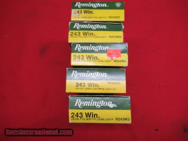 5 Boxes 100 Rds Remington 243 Win Factory Ammo