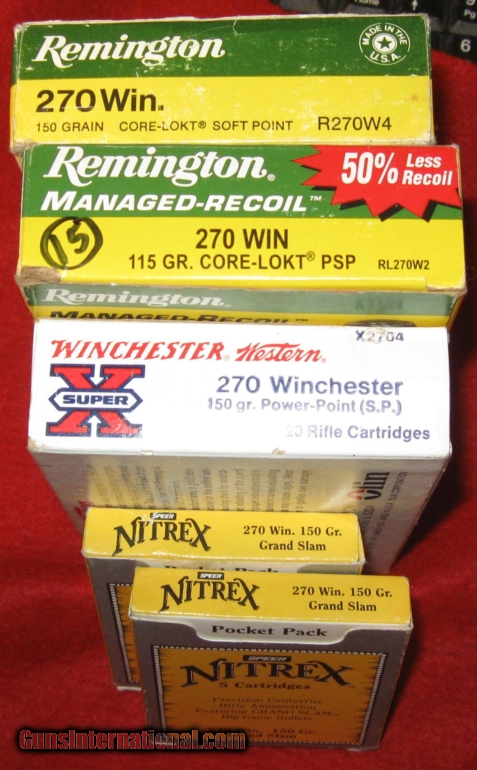 Description: THIS AMMO LOT INCLUDES: 2-5 ROUND POCKET PACKS OF SPEER NITREX150 GRAIN GRAND SLAM BULLET 1-20 ROUND BOX OF WINCHESTER 150 GRAIN POWER POINT JSP 1-20 ROUND BOX REMINGTON 150 GRAIN CORE-LOKT SOFT POINT 1-15 ROUND BOX REMINGTON MANAGED-RECOIL 115 GRAIN CORE-LOKT POINTED SOFT POINT PROOF OF 21 YEARS OF AGE REQUIRED FOR PURCHASE FREE SHIPPING TO CONTINENTAL US SOLD |