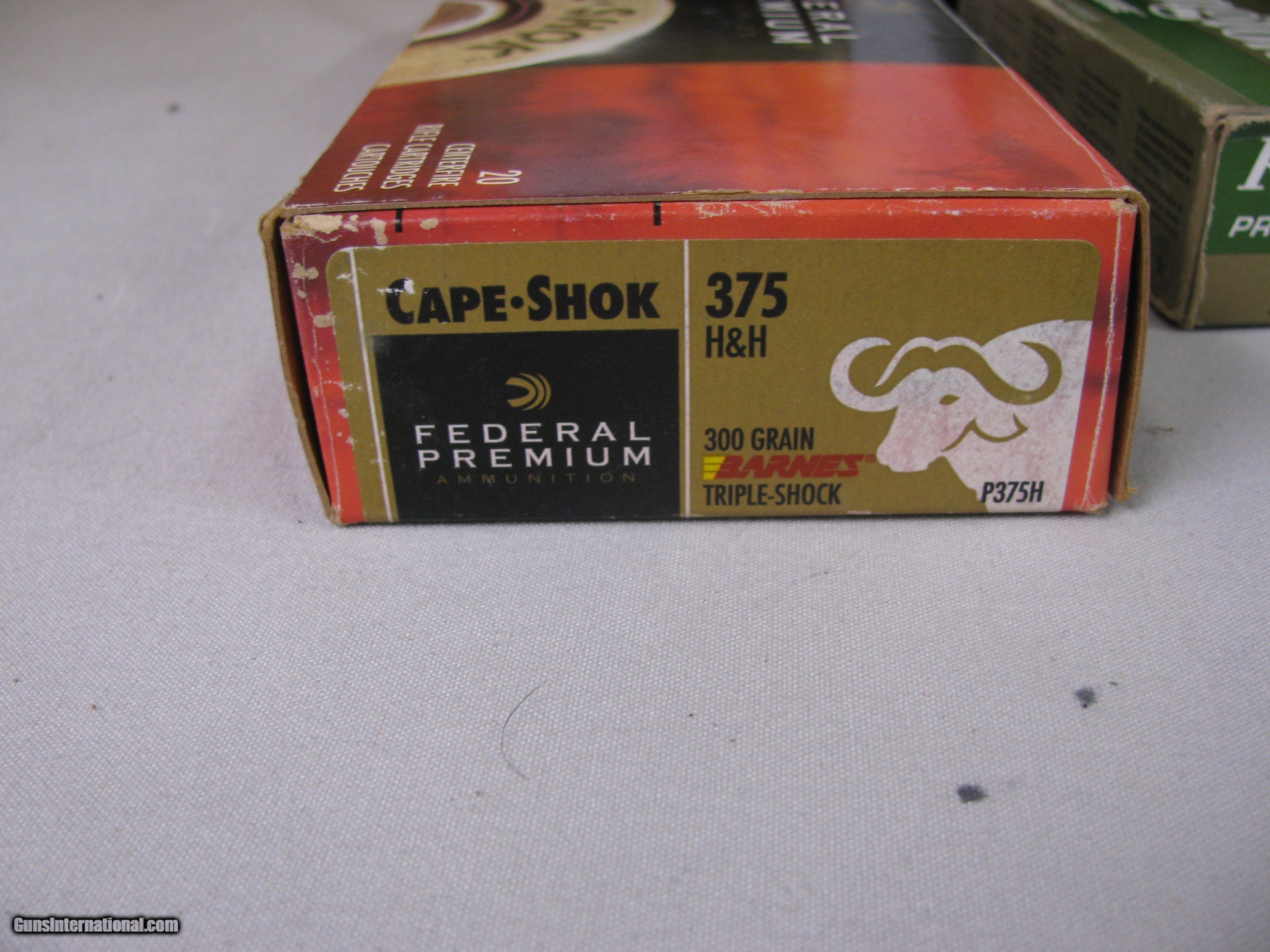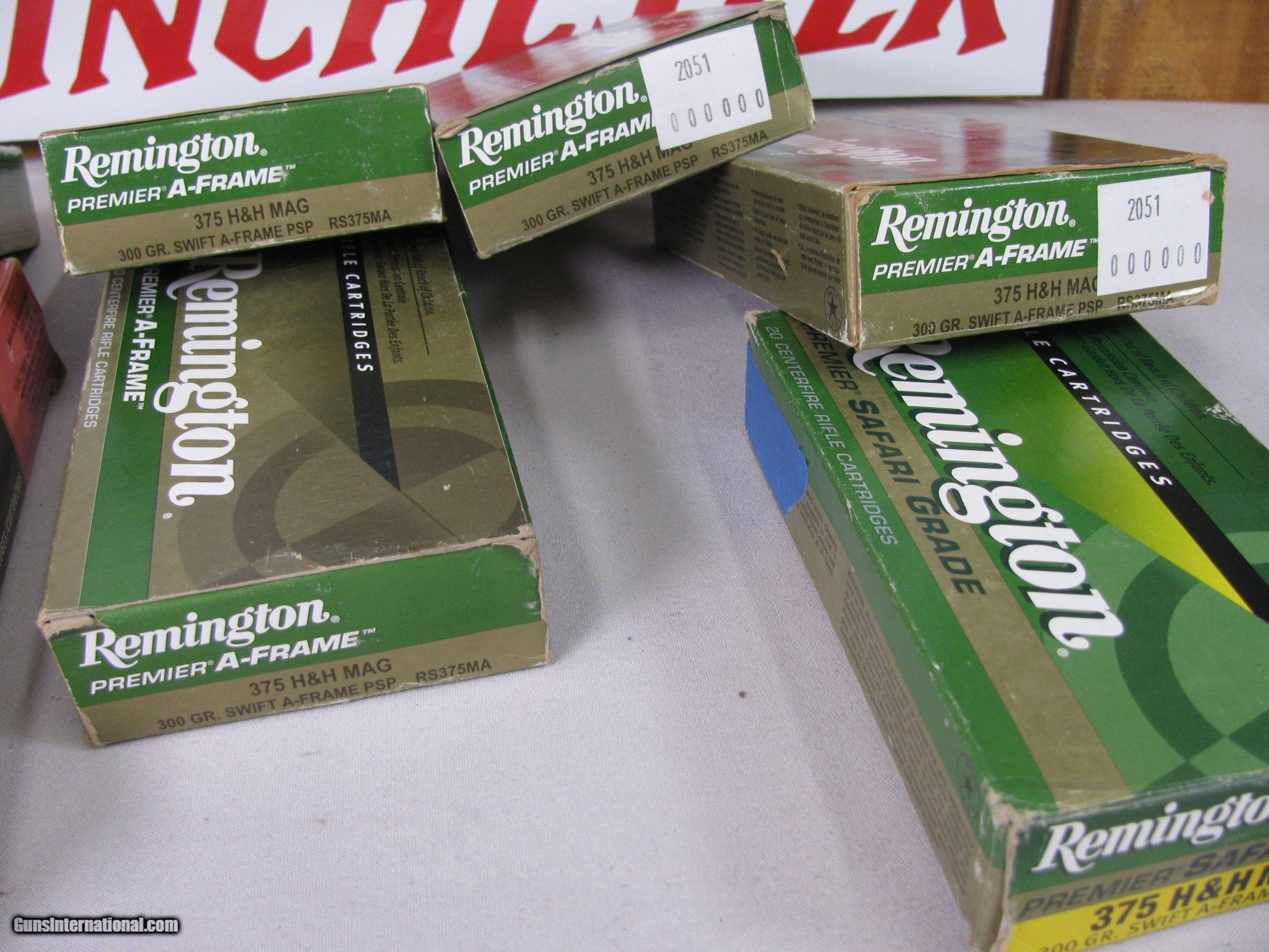 Description: 8763 357 H+H Ammo Mag 300 Grain- Federal Premium and Remington safari grade- 108 full rounds total 12 spent casings. SOLD Rifle Caliber: .375 H&H Magnum |