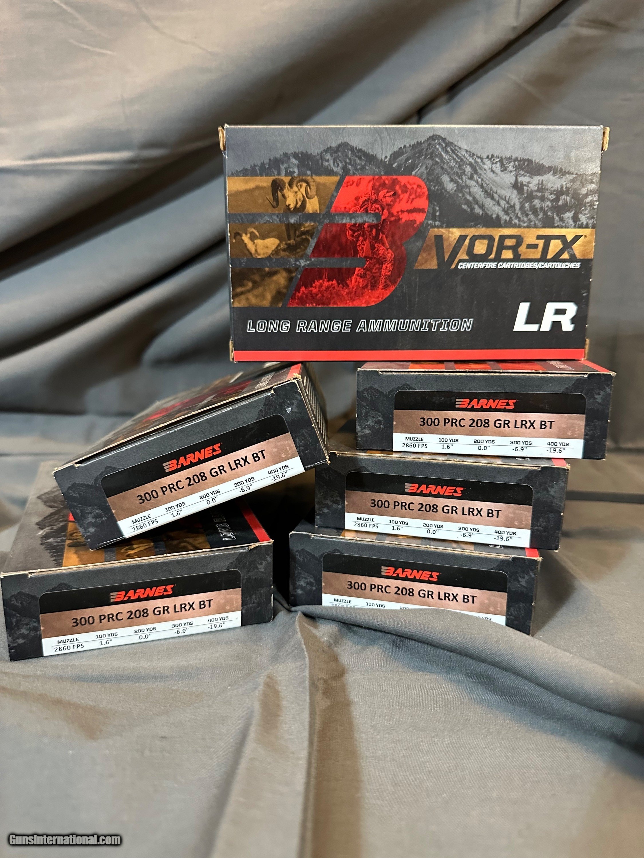 Description: 6 boxes of Barnes Vor-Tx loaded ammo of same Lot # 300PRC with 208gr Barnes LRX-BT bullet Price: $390.00 Shipping: $25.00 Contact Seller |