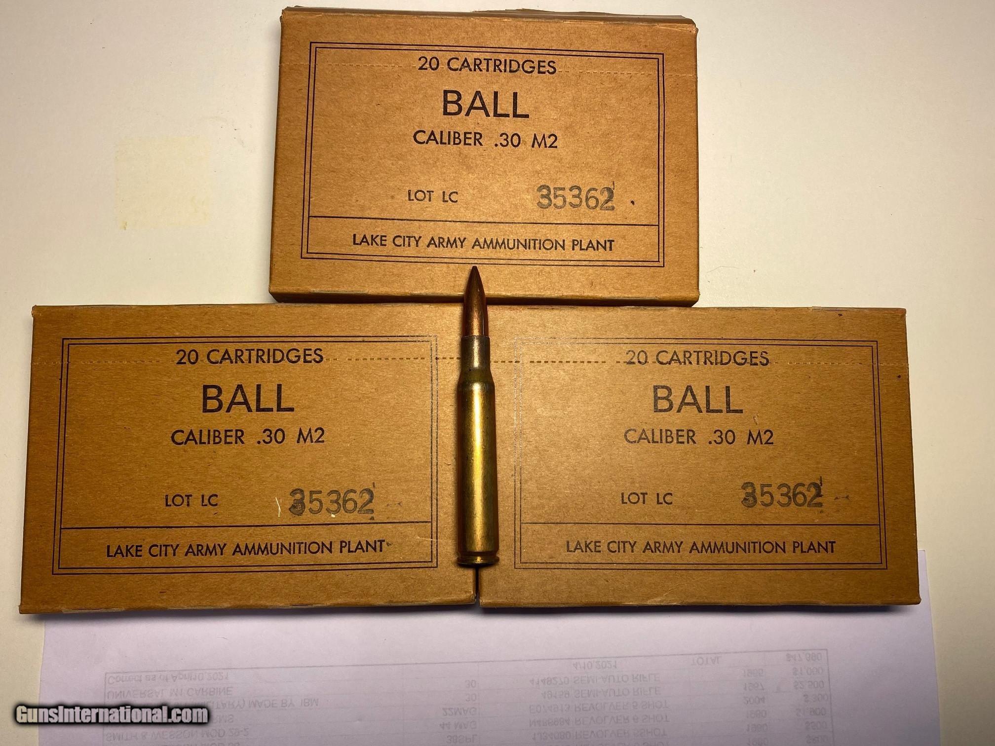 Description: Lake City Army Ammunition Plant. Caliber .30 M2 (30-06) Springfield Headstamp 76 (1976) Description: 30-06 Springfield M2 Ball 30cal 150 Grain FMJ Brass Cased Box of (20) Rounds x 3. (60) Rounds Total. All ammo is 100% Brand New, Name Brand in its original packaging. The ammo is ready to ship. SOLD |