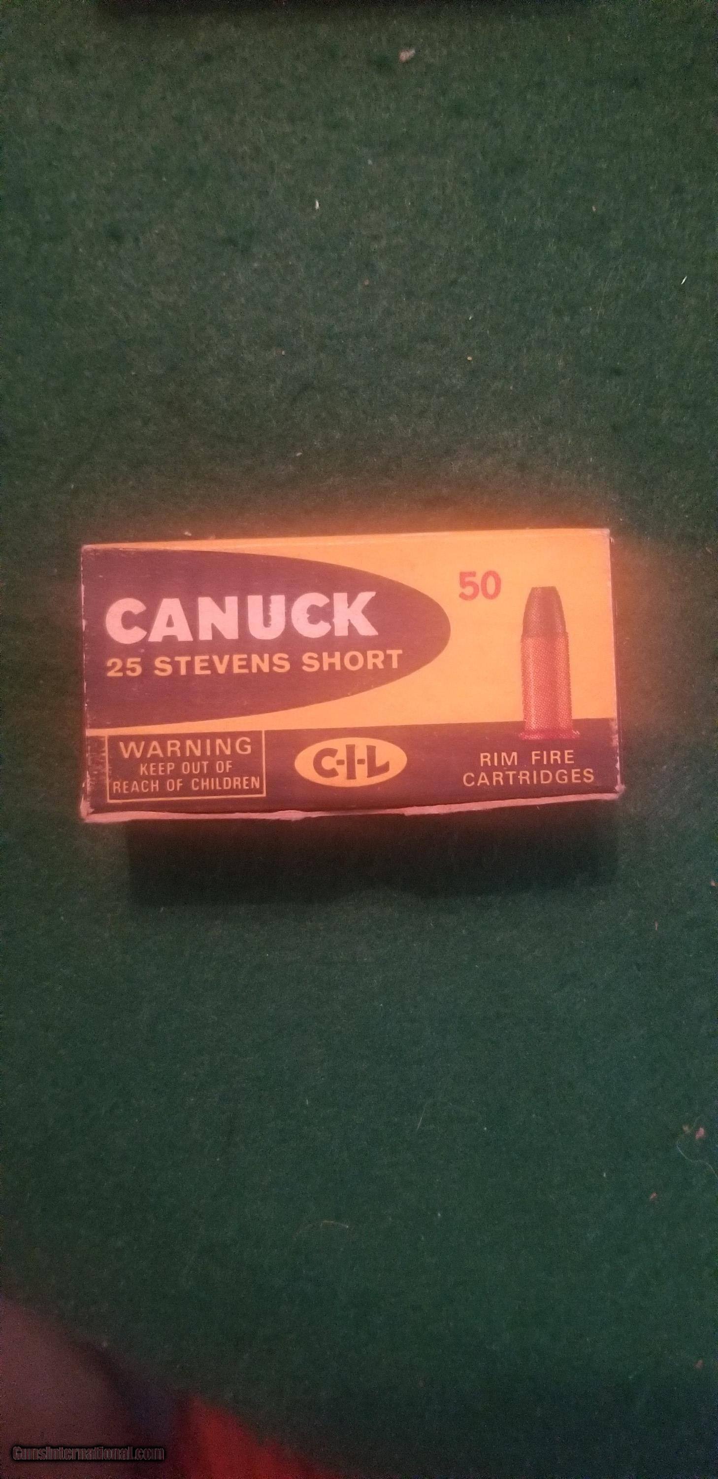 Description: 48 rounds 25 Stevens short cartridges. Shipping cost is $14.00. I will combine shipping on multiple boxes of ammo. SOLD |