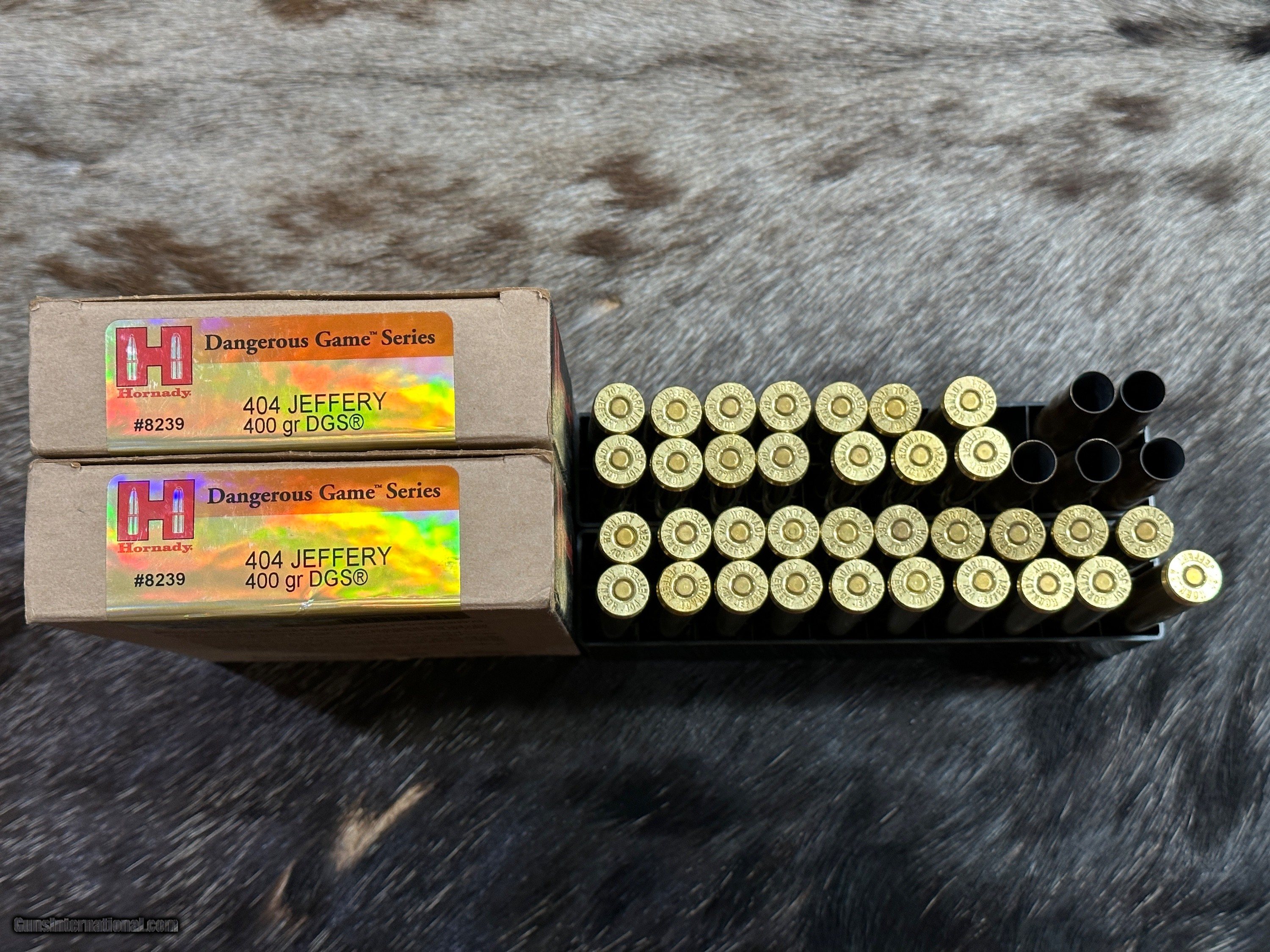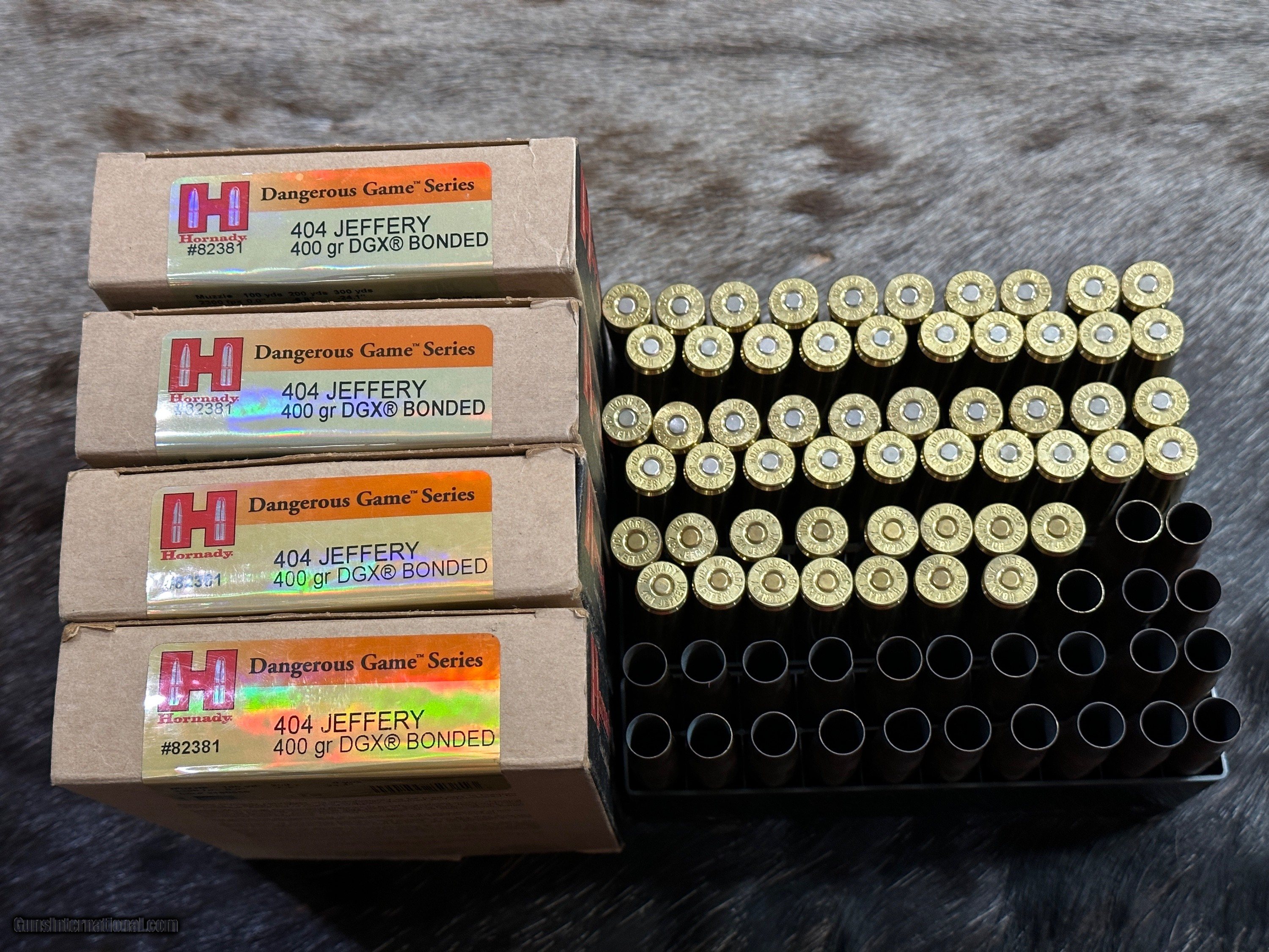 FACTORY HORNADY 404 JEFFERY, 89 ROUNDS DGX BONDED & DGS AMMO & 30 BRASS