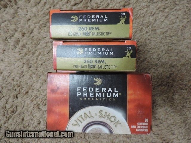Description: PREMIUM 120 GR NOSLER BALLISTIC TIP # P260B, 20 RD / BOX, $39.00 / BOX , FIVE 5 BOXES TOTAL= $195.00 FREE SHIPPING NO CREDIT CARD FEES SOLD Rifle Caliber: .260 Remington |