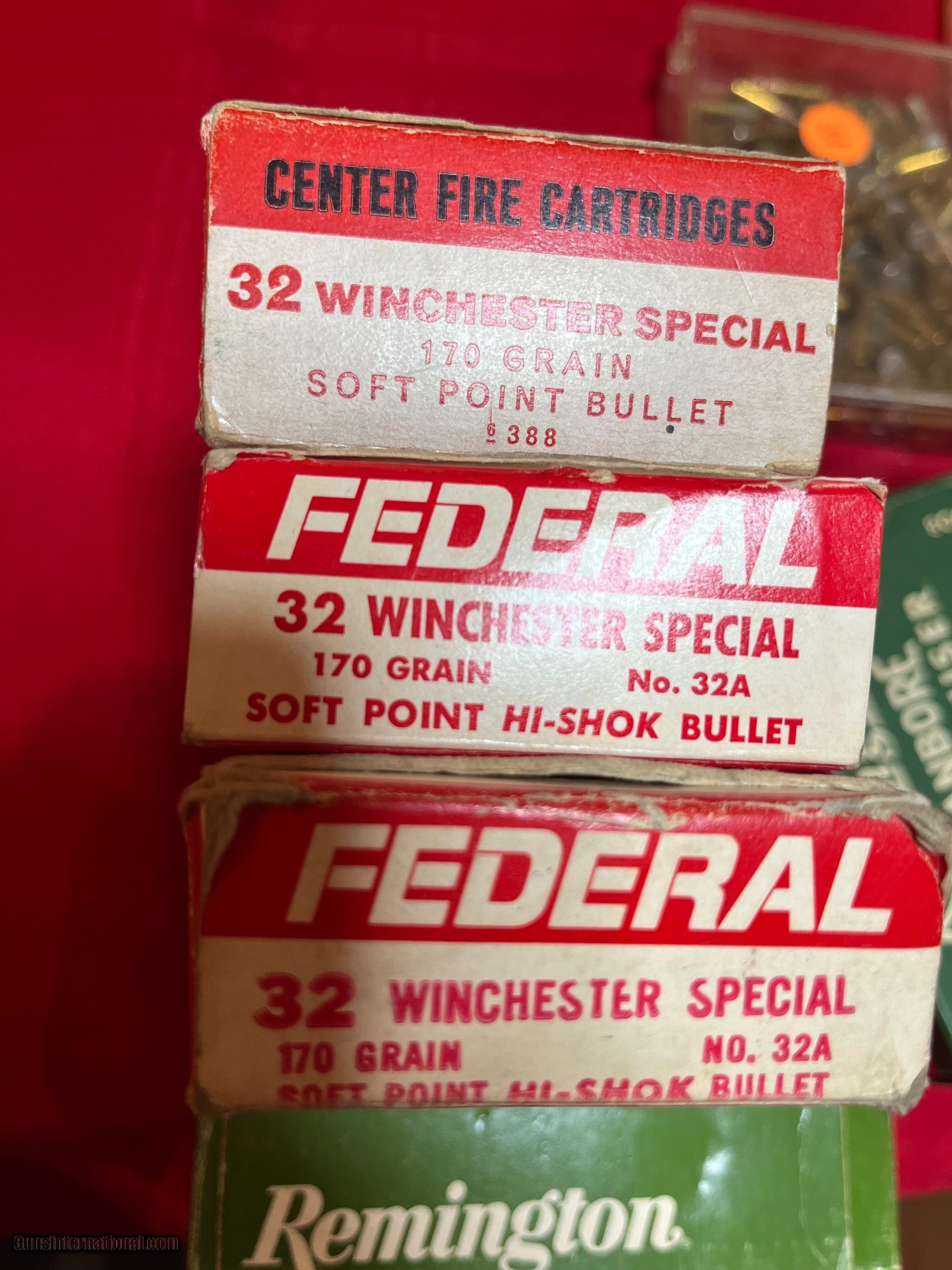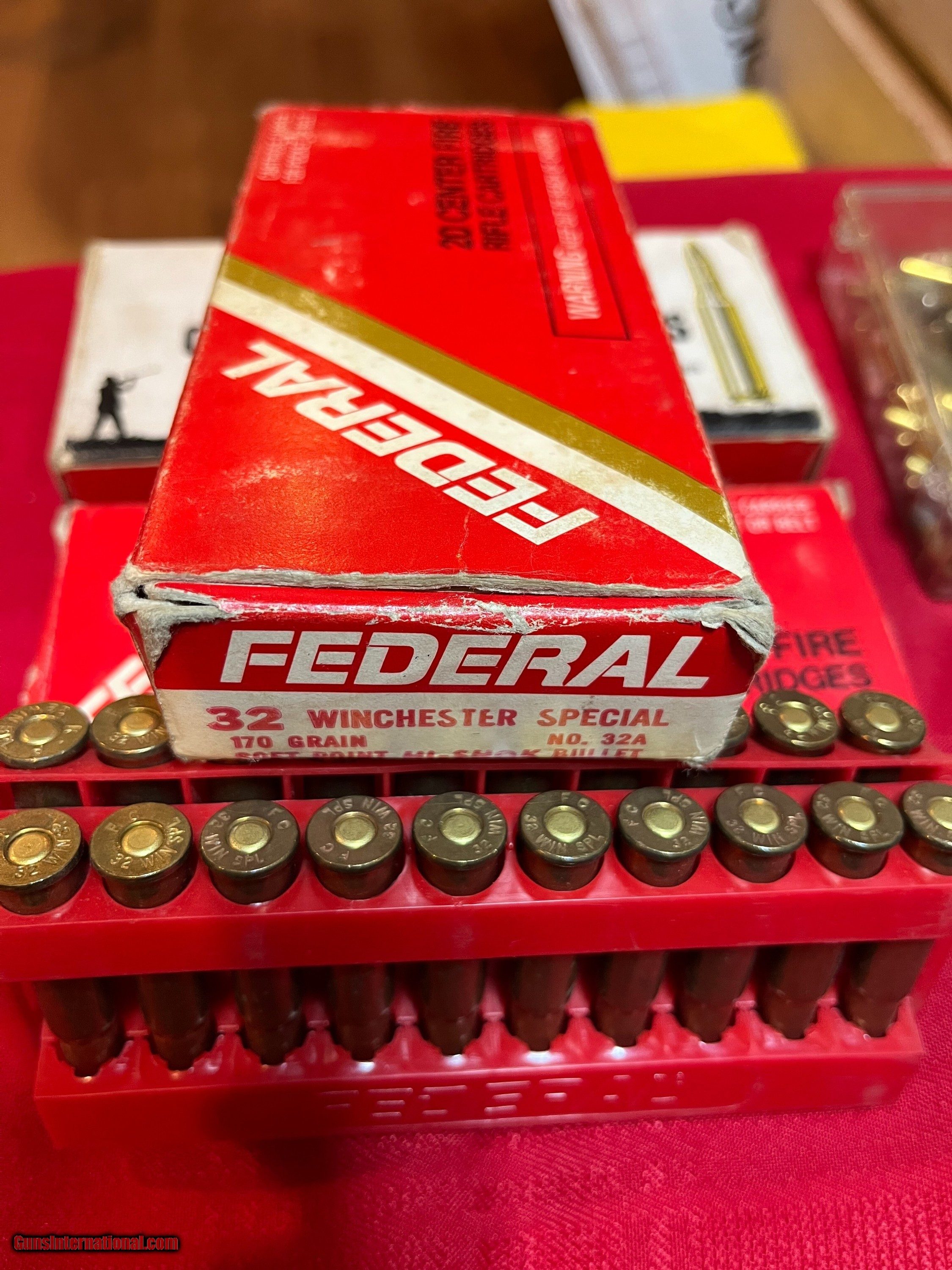 Description: 3 Full and correct boxes of Federal 170 grain 32 Special ammo. Free Shipping to 48 SOLD Rifle Caliber: .32 Winchester Special |