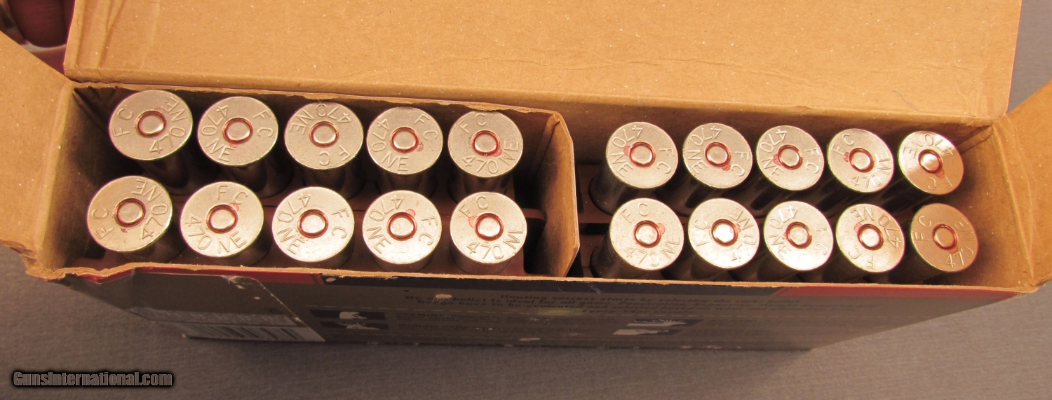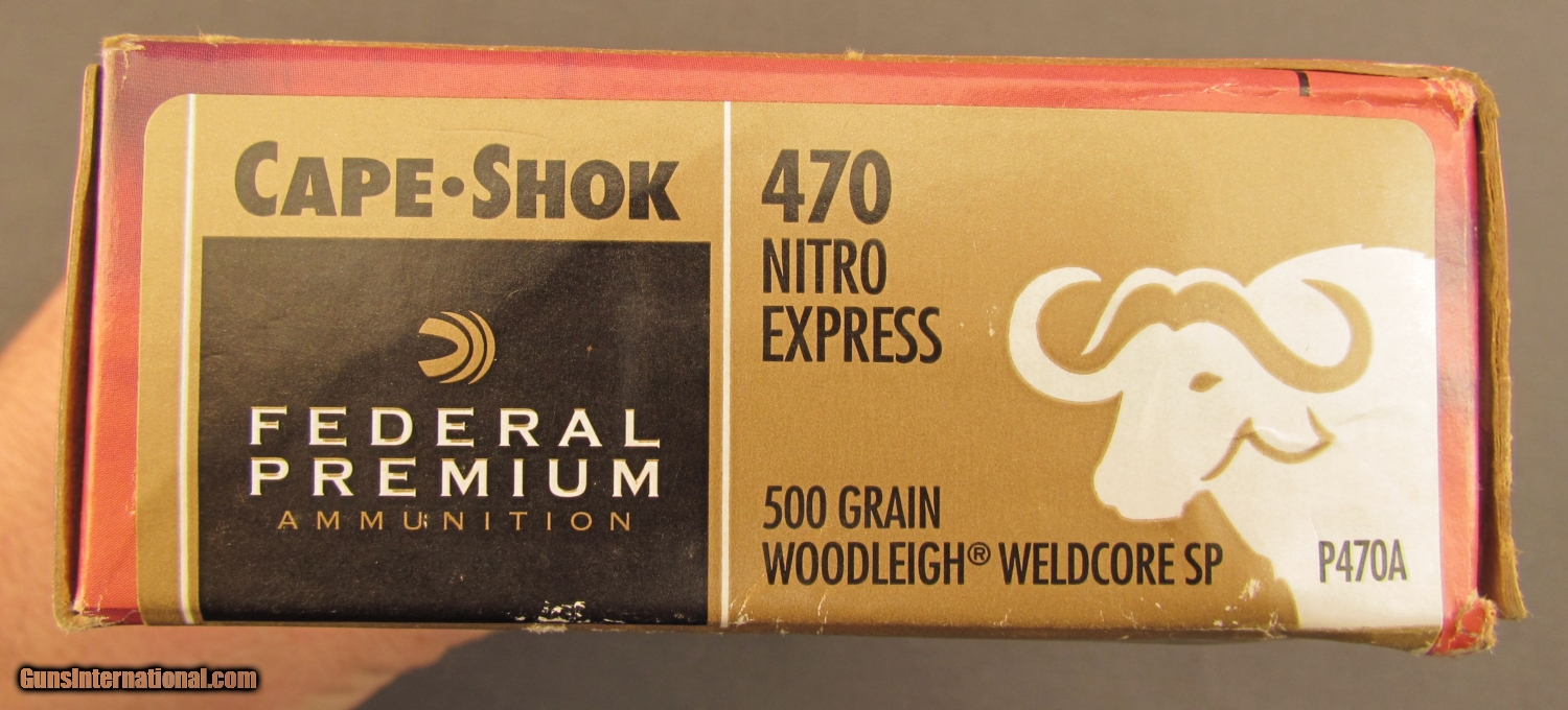 Description: This full 20 round box is loaded with 500 grain Woodleigh Weldcore soft point bullets in nickel plated cases. Box shows shelf wear with a crinkled corner. Ammo remains bright and clean and comes in four plastic belt carriers. SOLD Manufacturer: Federal Model: Ammo Caliber Info: .470 NE Gauge Info: .470 NE |