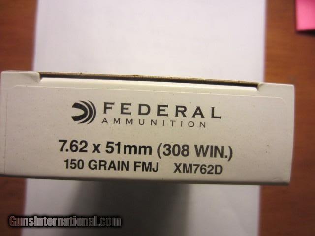 Description: FEDERAL 7.62X51 (308) WINCHESTER 150 GRAIN FMJ PRICE PER BOX $30.00 SHIPPING COST BASED ON NUMBER OF BOXES ORDERED. WANT TO PURCHASE CALL OUR OFFICE 716-941-3946 SOLD |