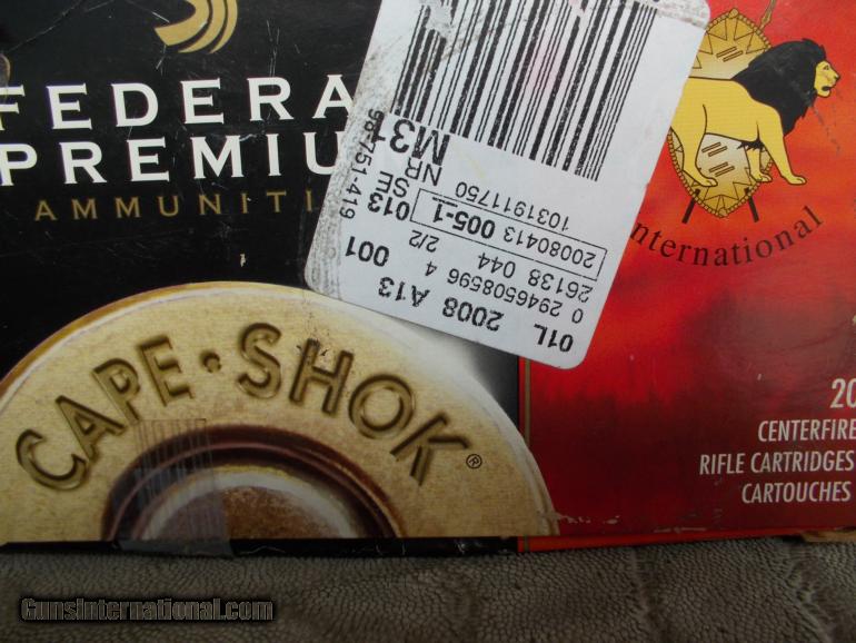 Description: Federal Cape Shok .375 H&H, 300 Noslar partition (20) SOLD |