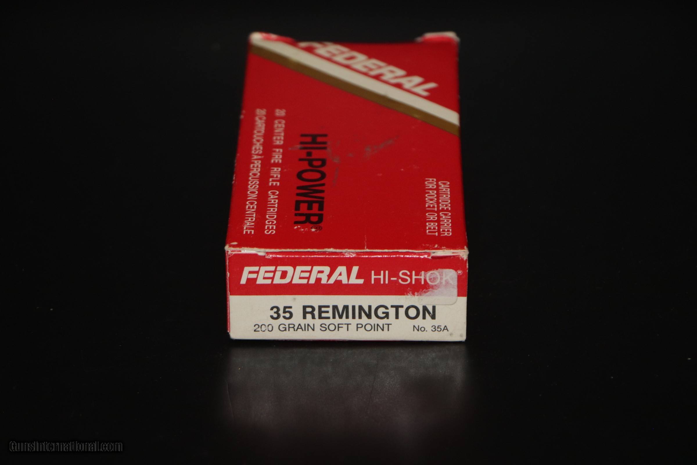 Description: 20 Excellent Factory Rounds of Federal Hi-Shok 35 Remington, 200 Gr. SP. Add 16.50 S+H SOLD Rifle Caliber: .35 Remington |