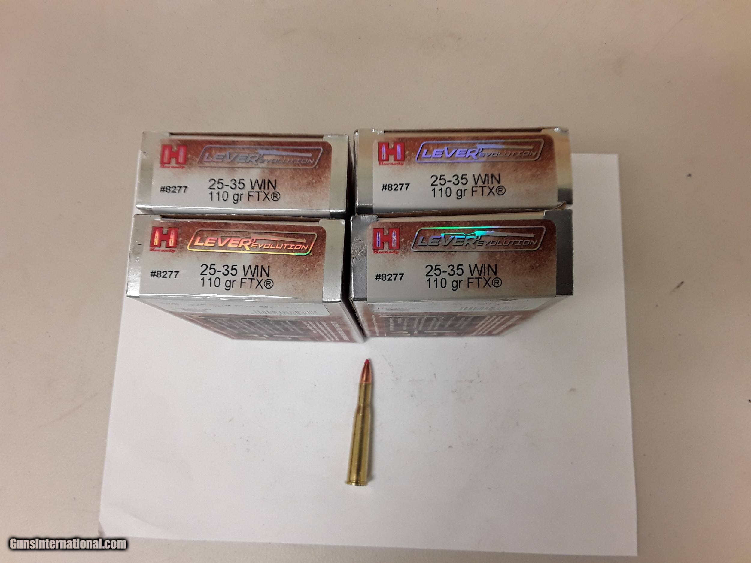 Description: HORNADY 25-35 WIN AMMUNITION 110GR. FTX LEVEREVOLUTION 8277 4 BOXES OF 20EA. 80RNDS TOTAL $100.00 DELIVERED SOLD |