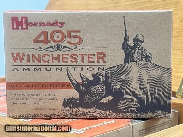 Hornady .405 Winchester 200 Rounds Ammo In Theodore Roosevelt "Medicine Gun" Wooden Crate Pristine!